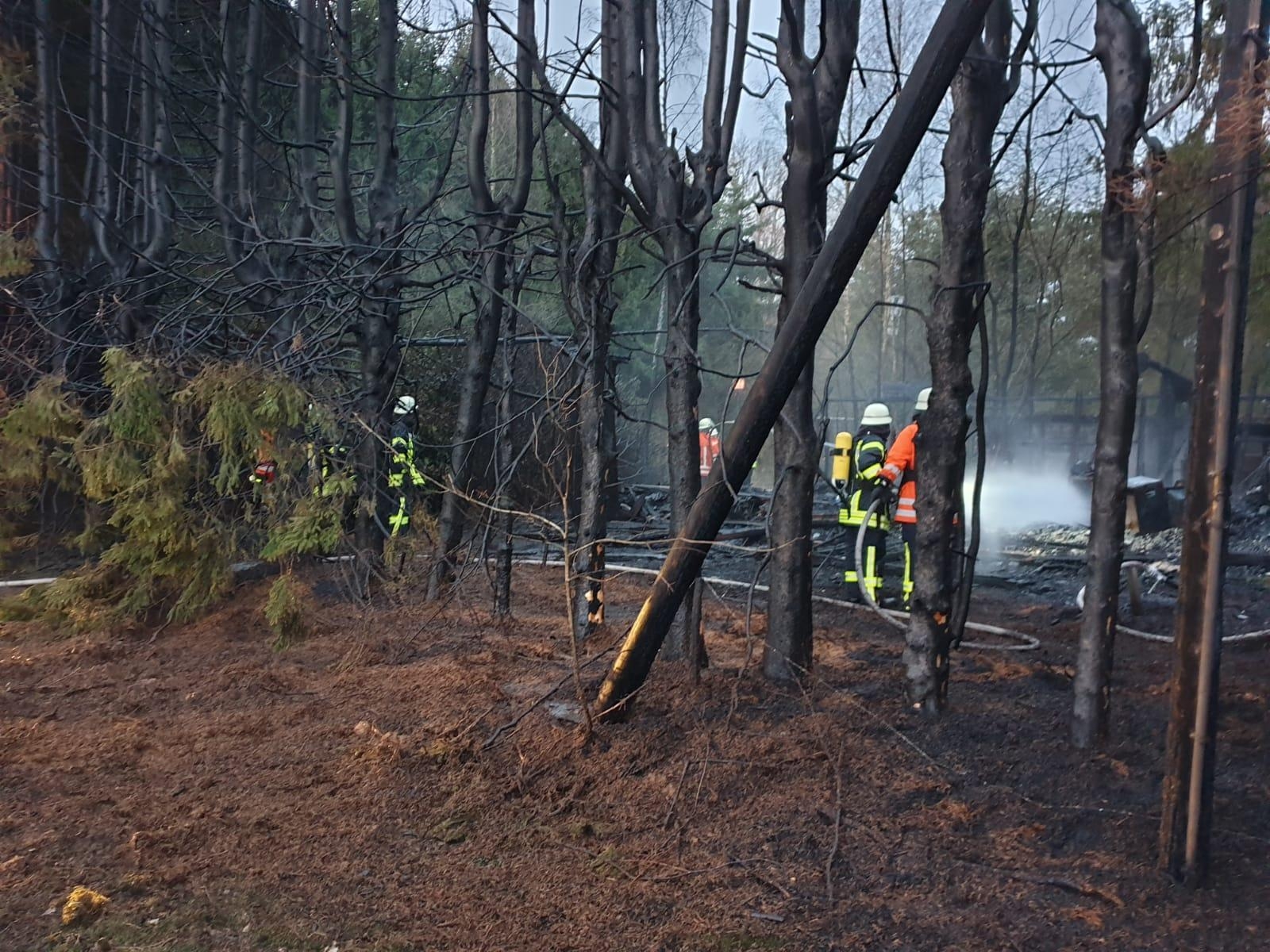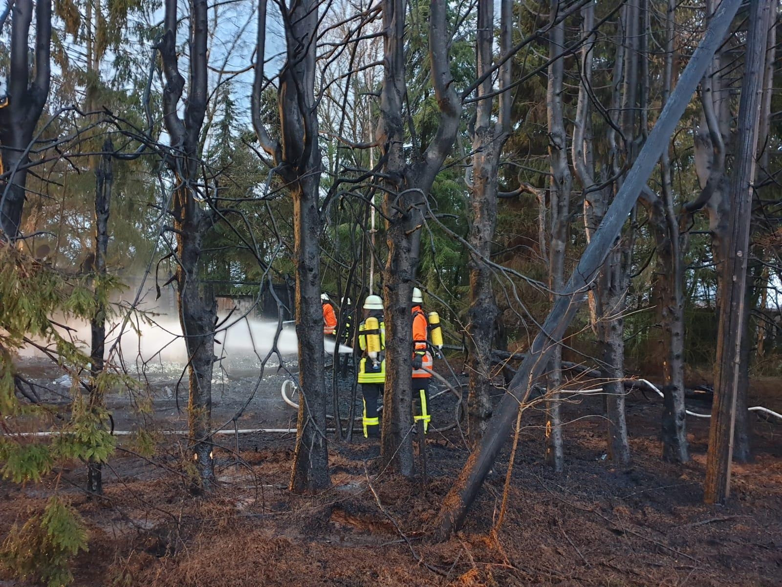 Klein Meckelsen (as). Am Sonntagmorgen gegen 04.21 Uhr kam es in Klein Meckelsen, im Wiesenweg zu einem Großbrand. Ein leerstehendes Einfamilienhaus aus Holz stand lichterloh inFlammen.Die Feuerwehren aus Klein Meckelsen, Sittensen, Ippensen, Groß Meckelsen und Zeven warenschnell zur Stelle. Nach erster Erkundung durch Einsatzleiter Thomas Schnackenberg machten sich umgehend mehrere Trupps unter Atemschutz an die Brandbekämpfung. Die Zevener Drehleiter konnte aufgrund der umstehenden Bäume nicht eingesetzt werden. Parallel musste eine umfangreiche Wasserversorgung hergestellt werden. Besonders schwierig war hierbei, dass der nächste Hydrant weit entfernt war. Es musste Löschwasser aus einem offenen Gewässer und über längere Wegstrecke gefördert werden. Glücklicherweise wurde bei dem Brand niemand verletzt. Der Rettungswagen und der Notarzt waren vorsorglich alarmiert, da anfangs nicht klar waren, ob noch Personen im Gebäude waren. Ein komplettes Abbrennen des Wohnhauses konnte nicht verhindert werden, es brannte bis auf die Grundmauern nieder. Umliegende Bäume wurden ebenfalls in Mitleidenschaft gezogen. Die Ermittlungen zur Brandursache hat die Polizei aufgenommen. Der Einsatz war nach über vier Stunden beendet. Neben den rund 100 Feuerwehrkräften, die mit über zehn Fahrzeugen vor Ort waren, war die SEG-Rettung, der Gemeindebrandmeister, sein Stellvertreter sowie der Abschnittsleiter.