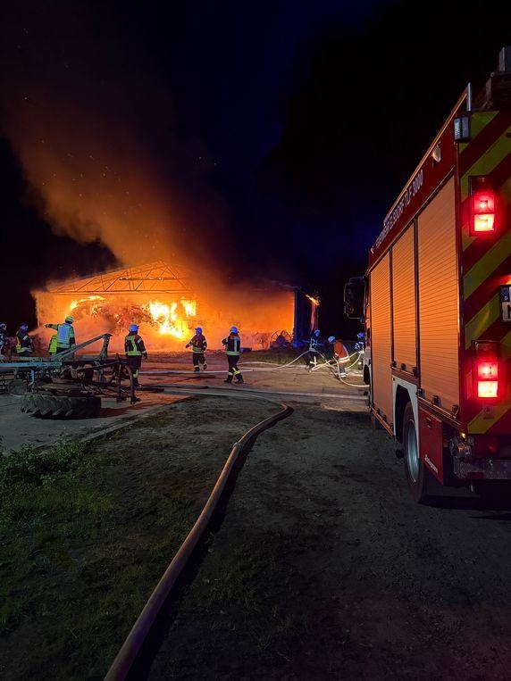 n den frühen Morgenstunden des 24. September 2025 wurden mehrere Feuerwehren gegen 2 Uhr zu einem Brand eines landwirtschaftlichen Gebäudes alarmiert. Beim Eintreffen der ersten Kräfte stand eine Scheune, in der hauptsächlich Stroh gelagert war, bereits in Vollbrand. Das Gebäude befand sich im hinteren Bereich eines größeren landwirtschaftlichen Betriebes.