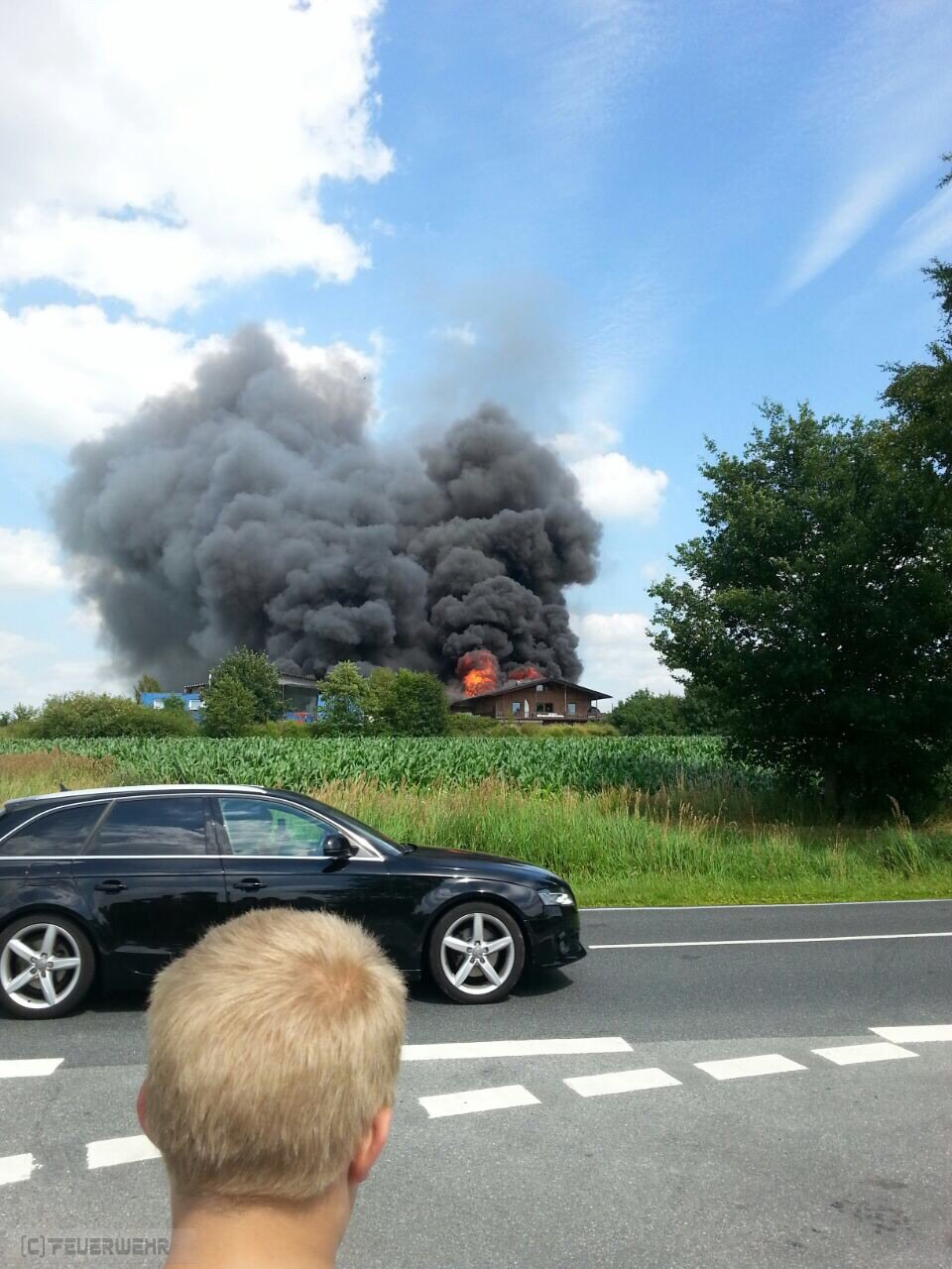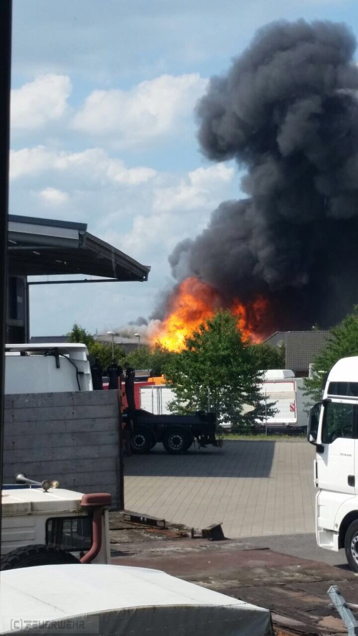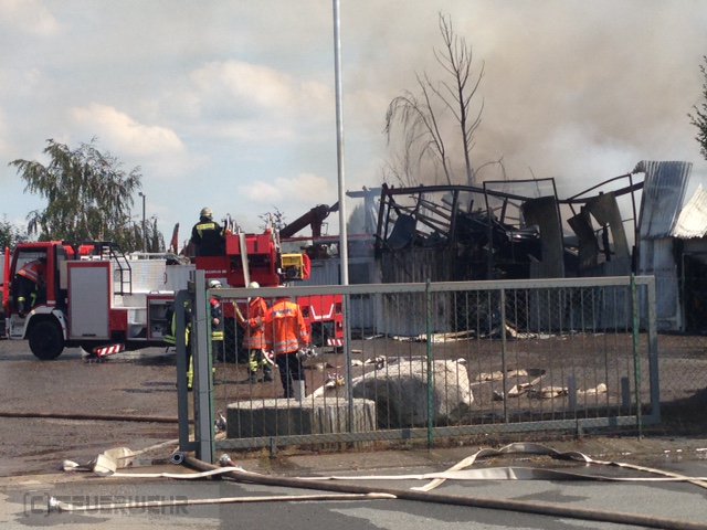 Auf der Anfahrt zu den Gerätehäusern konnten die Feuerwehrleute schon in der Ferne schwarze Rauchschwaden ausmachen. Nach Eintreffen der ersten Einsatzkräfte standen mehrere Container einer Speditions- und Dienstleistungsfirma und eine Lagerhalle eines Kajak Herstellers in Flammen.