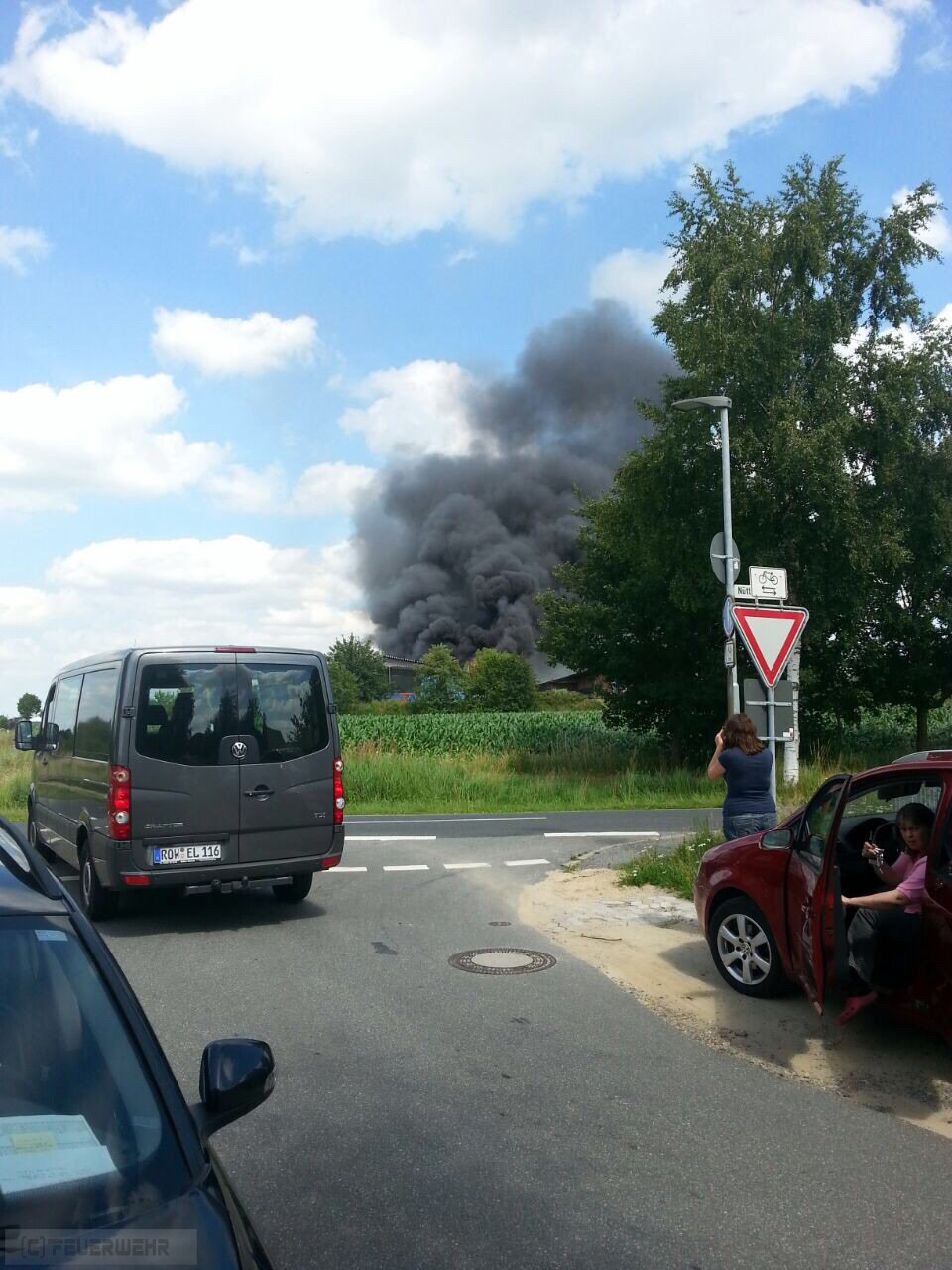 Lengenbostel (as). Gegen 14.18 Uhr am Mittwochnachmittag gingen mehrere Notrufe in der Leitstelle für Rettungsdienst und Feuerwehr in Zeven ein. Es sollte eine Lagerhalle im Gewerbegebiet Lengenbostel brennen. Umgehend wurde Großalarm für die Feuerwehren aus der Samtgemeinde Sittensen ausgelöst.
