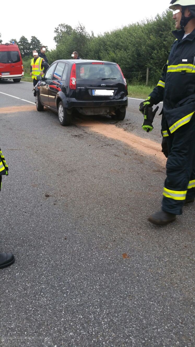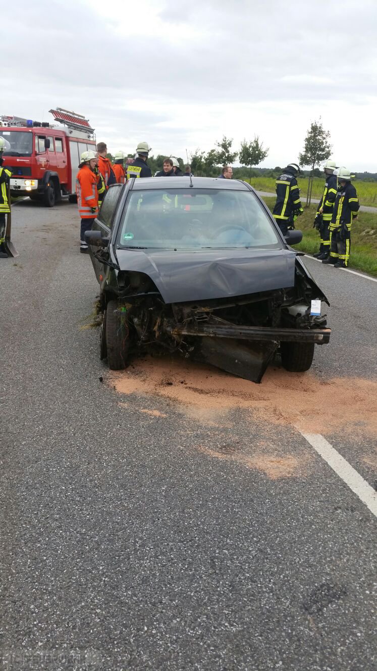 Zeven(tw) Alarm für die Ortsfeuerwehr Zeven am 08.08.16 um 19:02 Uhr,gemeldet wurden auslaufende Betriebsstoffe nach Verkehrsunfall. Die Ölspur wurde abgestreut und die verletzten Fahrzeuginsassen wurden bis zum Eintreffen des Rettungsdienstes durch die Kameraden der Ortsfeuerwehr Zeven versorgt.