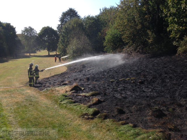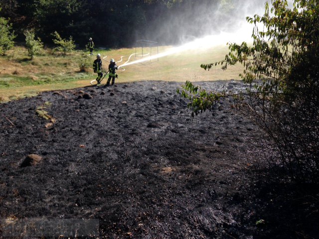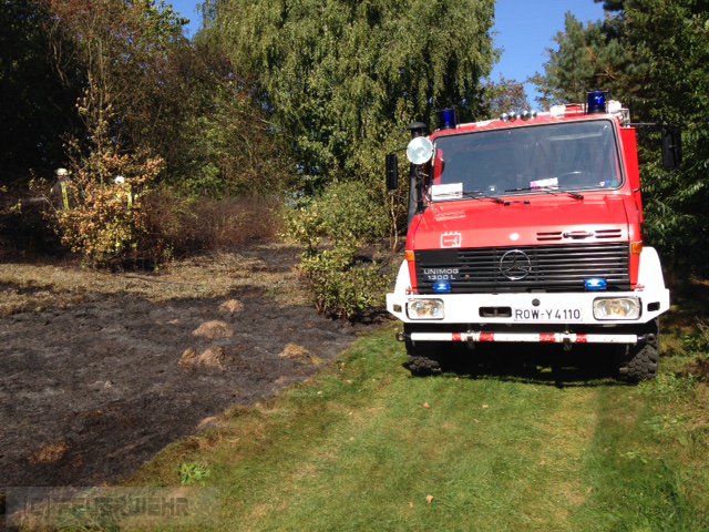 Zeven(tw) Alarm für die Ortsfeuerwehr Zeven am 25.09.16 um 13:25 Uhr zu einem Flächenbrand (FW1) am Spielplatz Zum Nullmoor, Anwohner hatten schon die ersten LKöschversuche unternommen aber kamen nicht gegen die Flammen an. Auf Anfahrt zum Feuerwehrhaus war die Straße Zum Nullmoor in dichten Rauch verhüllt. Umgehend wurde das Stichwort auf FW2 erhöht, Vollalarm für die FF Zeven sowie Alarm FF Heeslingen. Nach kurzer Zeit konnte an die Rettungsleitstelle Feuer aus gemeldet werden.