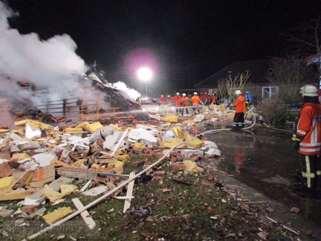 15.12.2016 Kalbe (as). Bei der Explosion eines Wohnhauses in der Dorfstraße ist am Donnerstagabend ein Mensch ums Leben gekommen. Gegen 20.50 Uhr waren Nachbarn durch die laute Detonation aufgeschreckt worden und hatten sofort die Polizei informiert. Mit der Meldung, „Feuer Menschenleben in Gefahr“ rückten die Einsatzkräfte von Feuerwehr und Rettungsdienst zur Einsatzstelle aus.