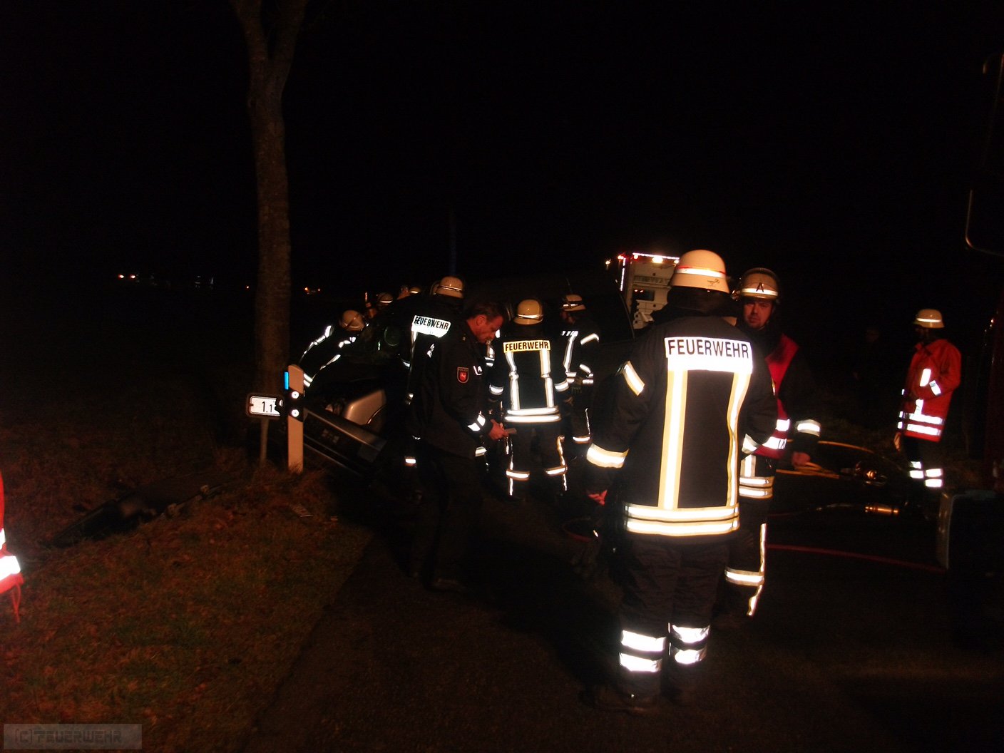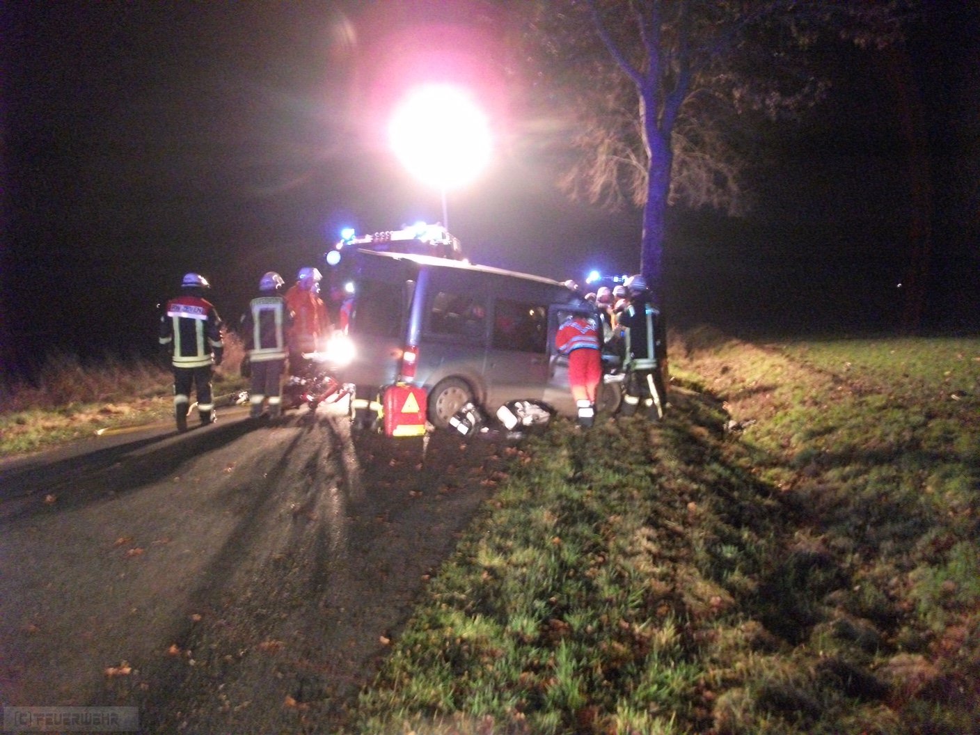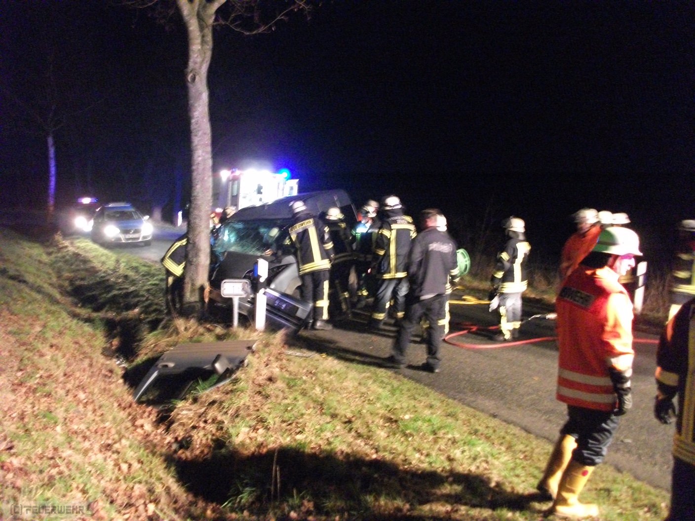 Ostereistedt(dm) Am 23.12.2016 wurden um 17:00 Uhr die Feuerwehren aus Ostereistedt und Zeven mit dem Stichwort THU1#THR auf die K 137 zwischen Ostereistedt und Rockstedt alarmiert. Aus ungeklärter Ursache ist ein Pkw nach rechts von der Fahrbahn abgekommen und gegen einen Baum geprallt. Er musste von den Feuerwehren aus seiner misslichen lage befreit werden. Noch auf Anfahrt der Feuerwehr Zeven wurde die Feuerwehr Rhade mit ihrem hydraulischen Rettungsgerät nachalarmiert. Der Fahrer konnte nach kurzer Zeit befreit und an den Rettungsdienst, bestehend aus dem Zevener RTW und dem Notarzt aus Rotenburg, übergeben werden. Auch der Gemeindebrandmeister ud sein Stellvertreter sowie der Bremervörder Abschnittsleiter waren vor Ort. Die Polizei aus Selsingen hat die Ermittlungen zur Unfallursache aufgenommen.