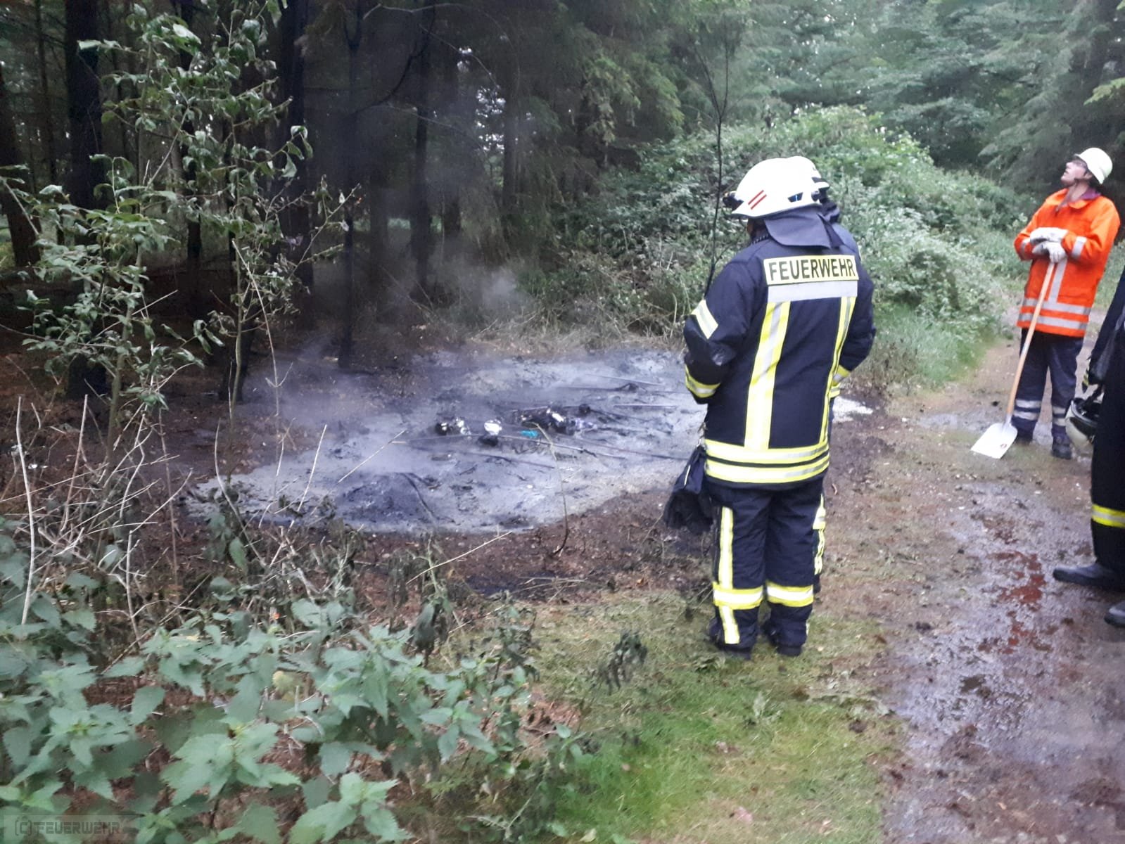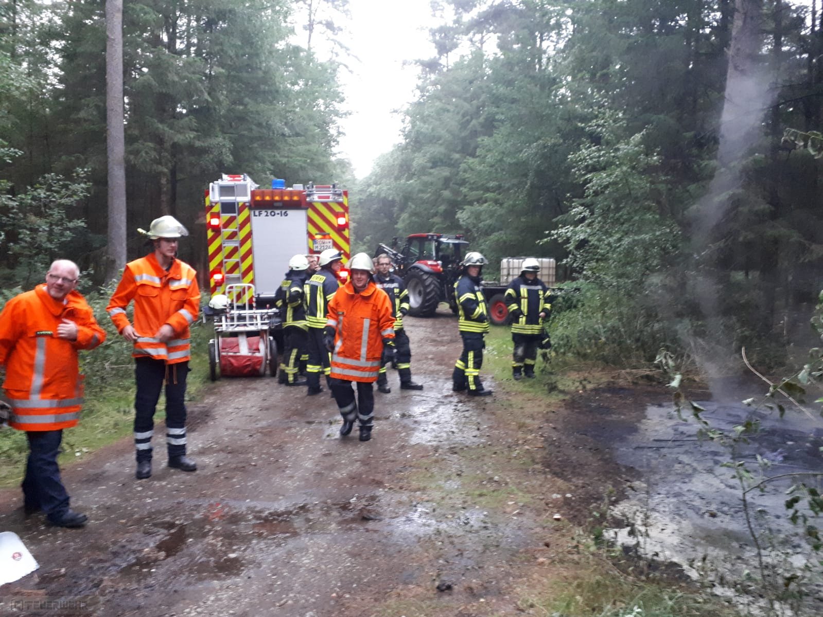 Brauel(tw) Alarm für die Ortsfeuerwehren aus Zeven und Brauel zu einem Feuer im Waldgebiet zwischen Brauel und Sassenholz am 22.06.18 um 20:25 Uhr, dort brannten zwei Dixi Klos die die Bundeswehr für ihre Soldaten dort aufgestellt hat. Bei Eintreffen der Feuerwehr Zeven hatte ein Landwirt bereits erste Löschmaßnahmen mit seinem Wassertransportanhänger durchgeführt. Die Besatzung des LF 20/16 hatte dann nur noch Nachlöscharbeiten durchgeführt.