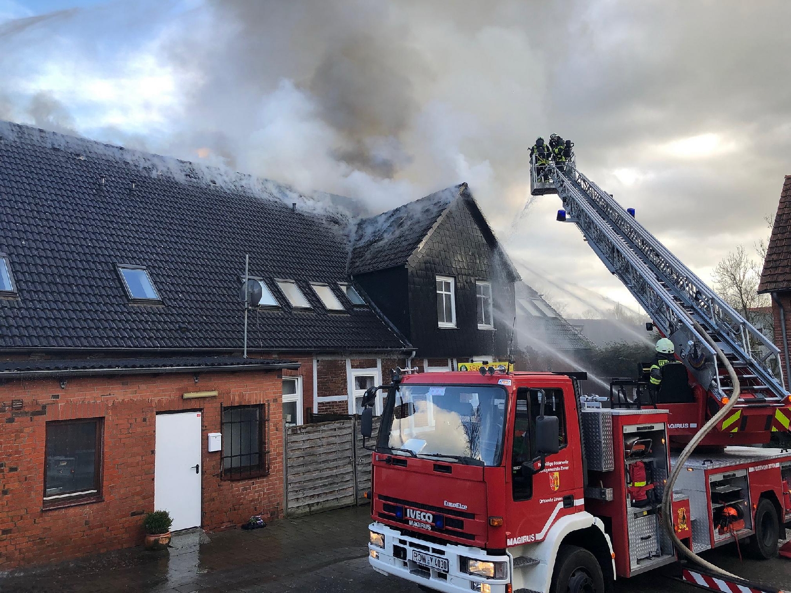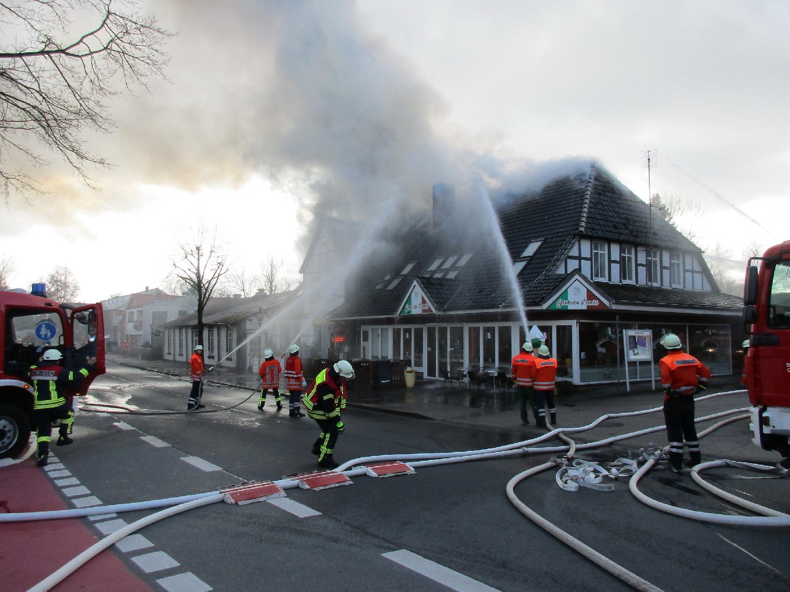 23.03.2019 Sittensen (as). Am Samstagnachmittag gegen 16 Uhr kam es in der Straße „Am Markt" in Sittensen zu einem Feuer in einem Wohn- und Geschäftsgebäude. Das Feuer brach aus ungeklärter Ursache im Erdgeschoss des Restaurants aus und breitete sich rasend schnell in den Dachstuhl aus. Anfangs sollten sich noch Menschen im Gebäude befinden, diese Bestätigte sich glücklicherweise nicht.