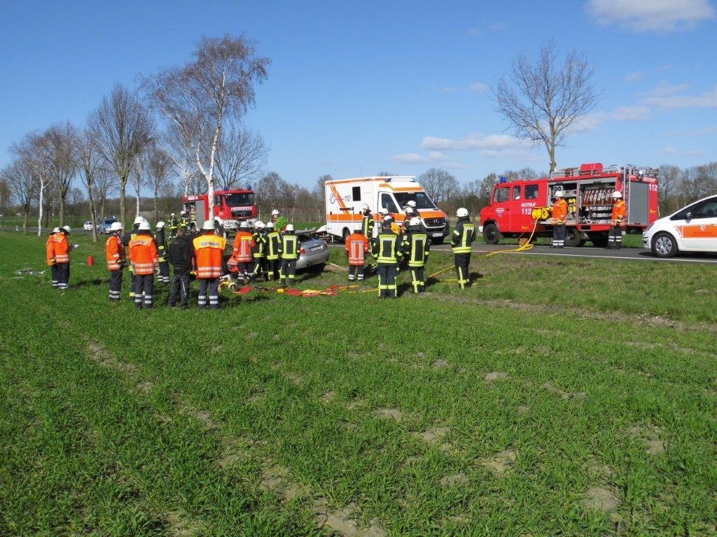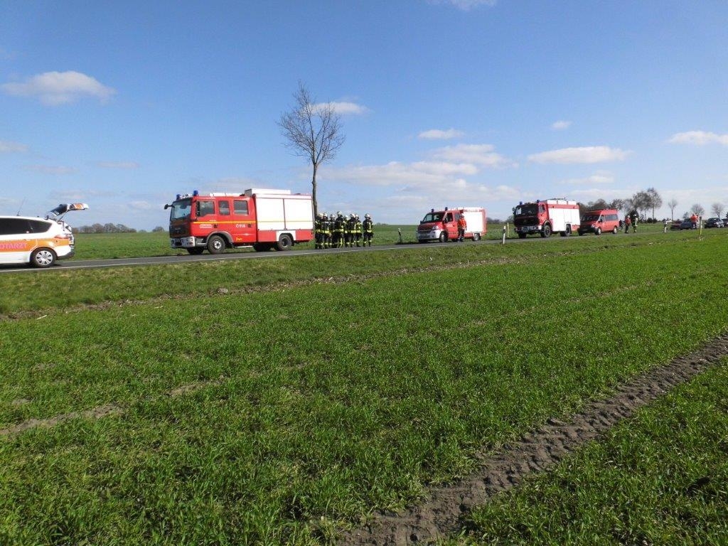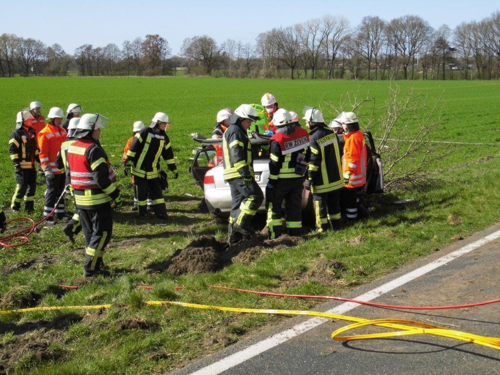 Aus ungeklärter Ursache kam ein Mann mit seinem Fahrzeug auf der Landesstraße 122 zwischen Rhadereistedt und Rhade von der Fahrbahn ab und prallte gegen einen Baum. Da er zwar nicht eingeklemmt war aber eine schonende Rettung dennoch erforderlich war, wurden die Feuerwehren aus Rhadereistedt, Rhade, Selsingen und der Rüstwagen aus Zeven nachalarmiert. Sie trennten das Dach ab und somit konnte die Person mit einem Spineboard gerettet werden. Mit schweren Verletzungen wurde der Mann in ein Krankenhaus transportiert. Nach kurzer Zeit konnte der Einsatz beendet werden.