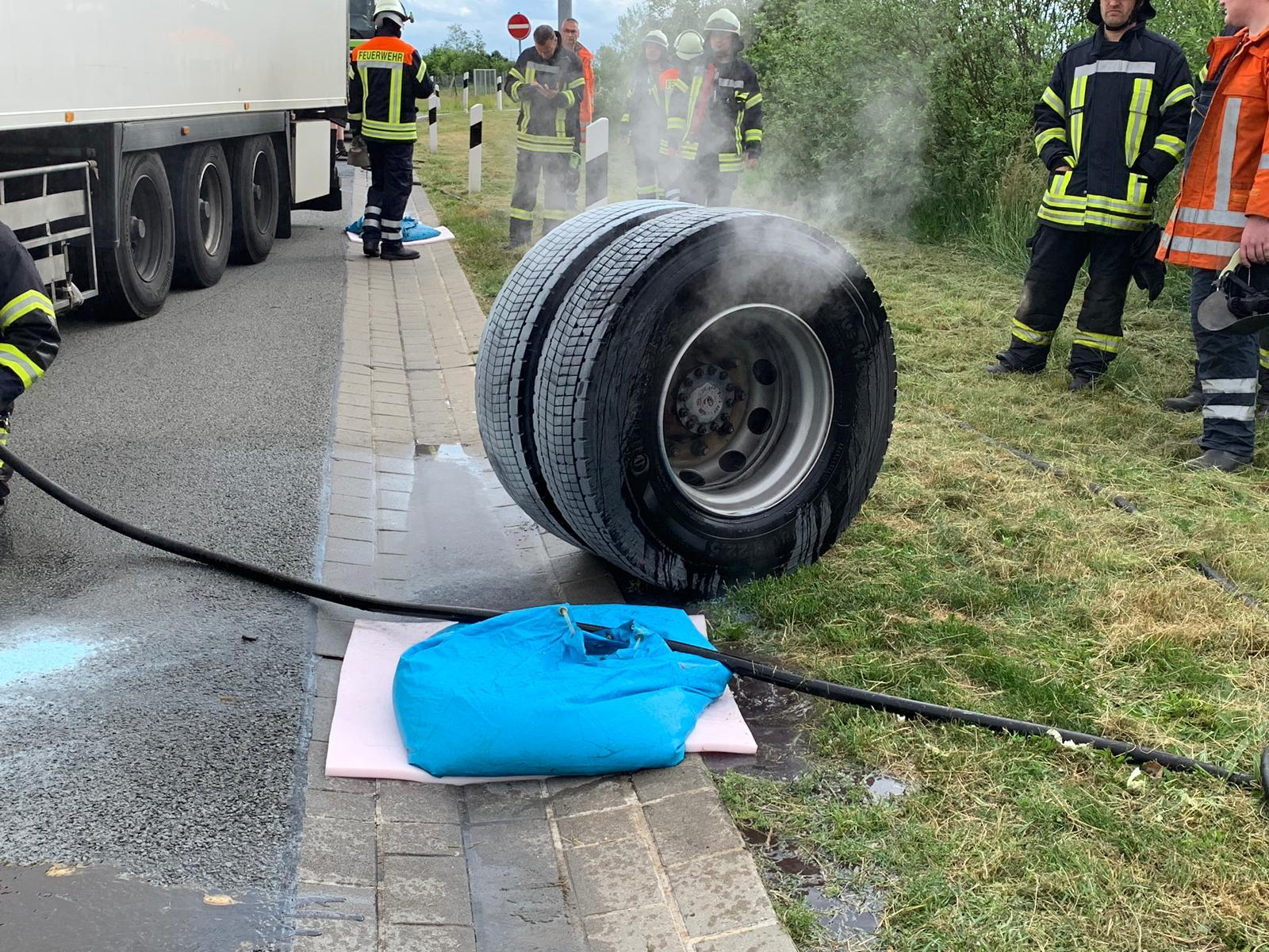 Alarm für die Ortsfeuerwehren aus Zeven,Elsdorf und Gyhum am 06.06.19 um 18:12 Uhr zu einem brennenden LKW auf dem Autobahnparkplatz Hatzte in Fahrtrichtung Hamburg. Da das TLF aus Elsdorf noch an der FTZ in Zeven stand, wurde noch zusätzlich das TLF aus Hetzwege alarmiert.Auf Anfahrt kam seitens der Leitstelle die Information der Sattelauflieger würde in Vollbrand stehen, dies konnte glücklicherweise nicht bestätigt werden.Der LKW hat seinen komplettenm Reifen verloren wobei auch die Radnabe heißgelaufen ist. Andere LKW Fahrer hatten mittels Feuerlöscher den Endstehungsbrand löschen können, die Feuerwehr hat die heiße Bremse gekühlt und auslaufende Betriebsstoffe gebunden, das LF 20 aus Zeven stand in Bereitstellung, die Kameraden aus Hetzwegen konnten den Einsatz abbrechen.