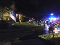 Heute Nacht um 1:37 wurden die Feuerwehren Farven, Anderlingen, Fehrenbruch, Byhusen, Selsingen und Zeven zu einem Gebäudebrand in den Farvener Ortsteil Baaste alarmiert. Dort stand eine ca. 20 x 30m große, massiv gebaute Scheune in Vollbrand. Ersteintreffende Kräfte der Feuerwehr Farven ließen umgehend weitere Kräfte aus Deinstedt, Malstedt und Ohrel nachalarmieren. Sofort wurde mit der Brandbekämpfung begonnen. Dazu wurden von mehreren Seiten insgesamt 7 C-Strahlrohre und zusätzlich ein Wenderohr über die Zevener Drehleiter eingesetzt. Später wurde noch zusätzlich ein mobiler Wasserwerfer in Stellung gebracht. Für die Löschwasserversorgung wurden in der Nähe liegende Unterflurhydranten und die ca. 1km entfernte Bever genutzt. Dank des massiven Löschwassereinsatzes konnte das Feuer schnell unter Kontrolle gebracht werden. Da sich in der Scheune große Mengen an Stroh und Feuerholz gelagert befanden, wurde noch ein Bagger organisiert, der das Gebäude Stück für Stück abgetragen und gelagertes Stroh nach außen gebracht hat. Aktuell, Stand 6:00 Uhr laufen noch die Nachlöscharbeiten, die sich wohl noch den Vormittag hinziehen werden.