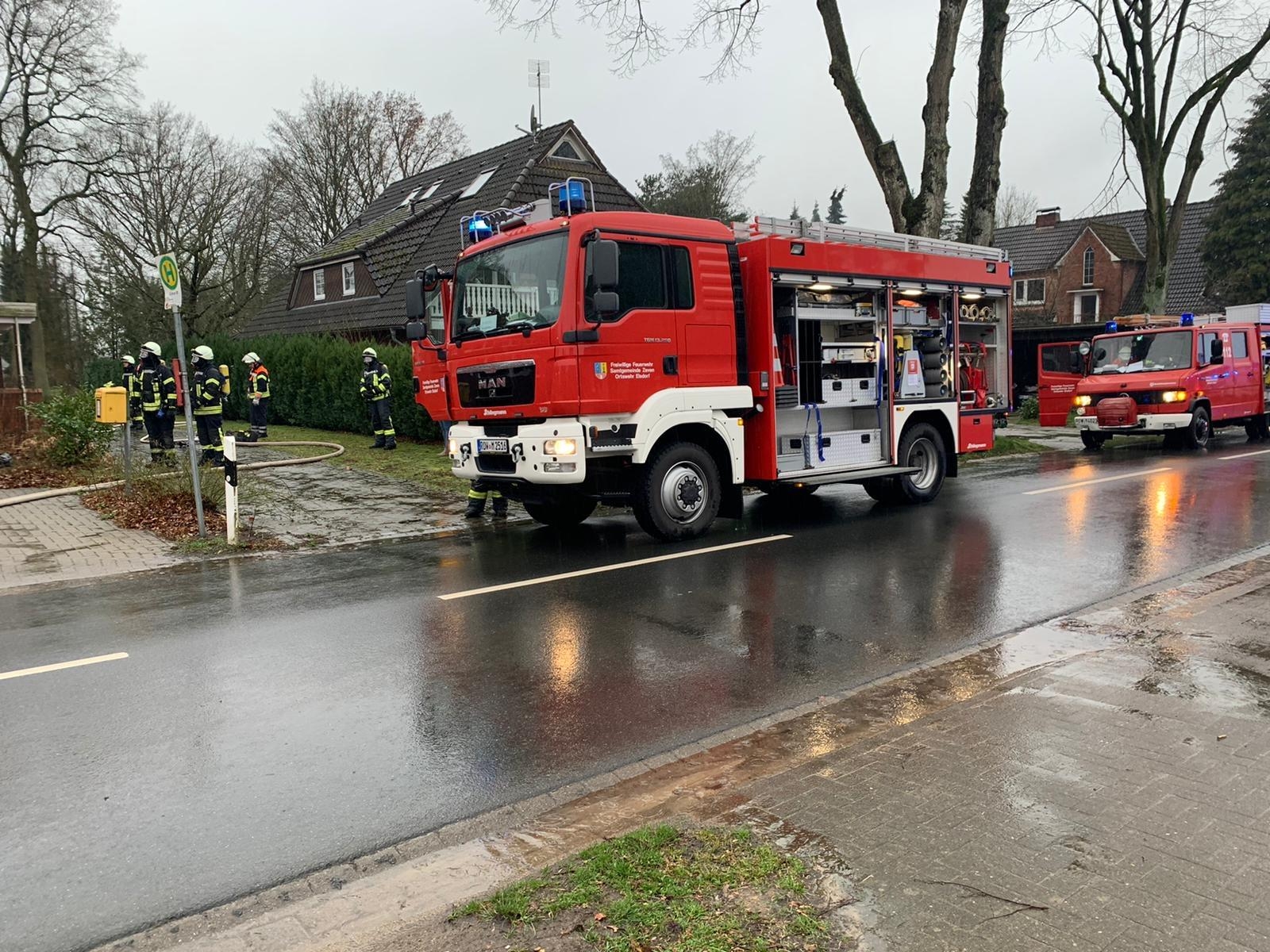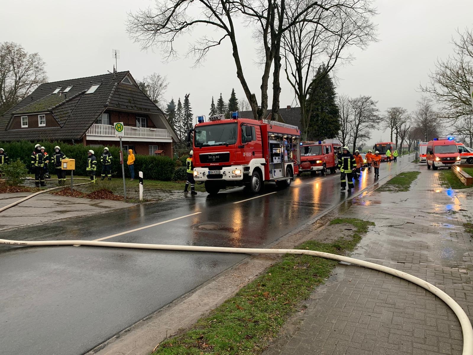 Umgehend machte sich ein Trupp unter Atemschutz zur Erkundung auf ins Gebäude. Mit einem C-Rohr hatten sie die Flammen schnell im Griff. Das Feuer zog bereits in die Zwischendecke sodass der Trupp die Brandstelle mit der Wärmebildkamera kontrollieren musste. Mit dem Druckbelüfter mussten die Räume vom Rauch befreit werden. Personen waren glücklicherweise nicht mehr in Gefahr. Der bereitgestellte Rettungswagen konnte unverrichteter Dinge wieder einrücken.Im Einsatz waren die Feuerwehren Hesedorf, Gyhum, Elsdorf, Zeven und Abbendorf. Wie es zu dem Brand gekommen war, ermittelt nun die Polizei. Nach rund 45 Minuten war der Einsatz für die über vierzig Einsatzkräfte beendet.