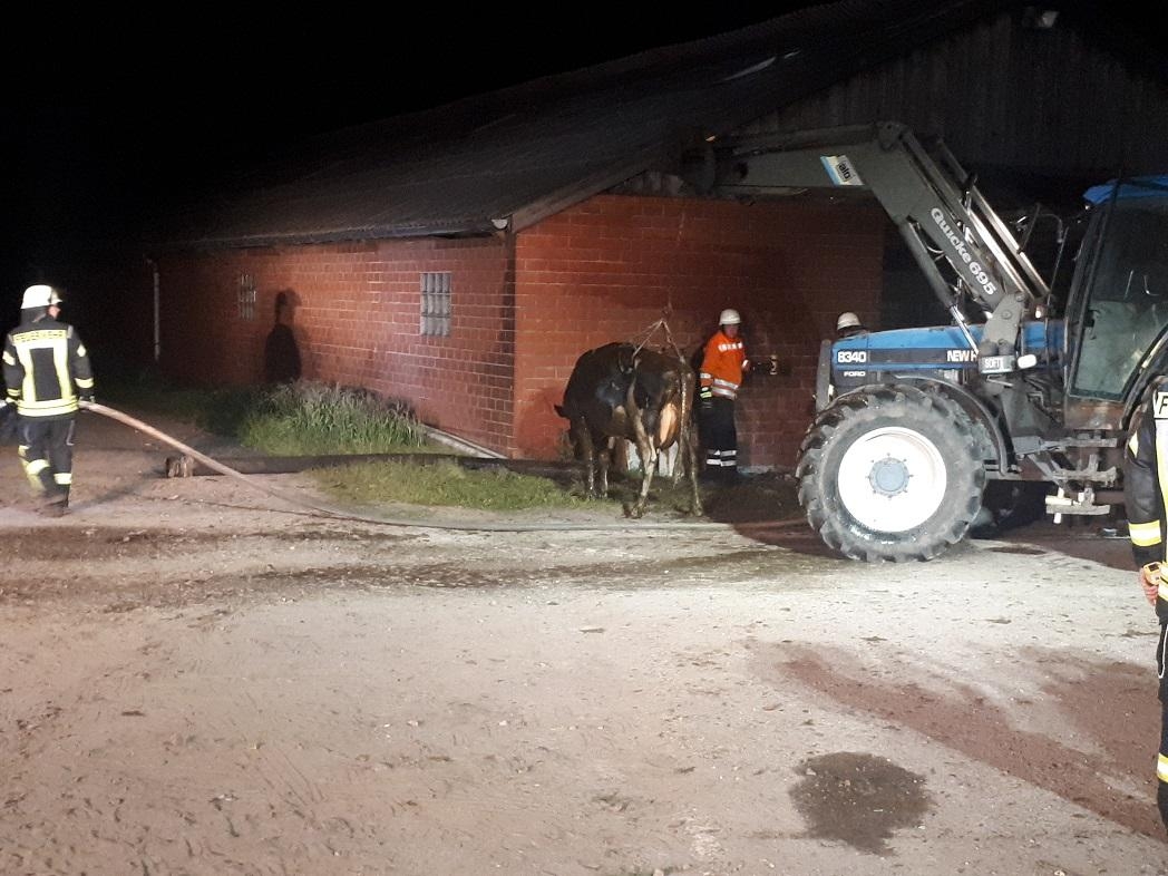 Mehrere Kühe in Güllegrube, Anforderung des Tierrettungsgeschirres sowie Wathosen aus Zeven.