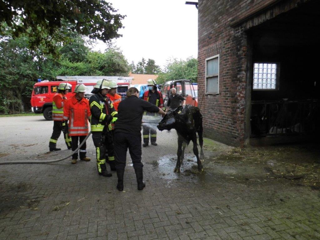 Es sind 13 Rinder in eine Güllegrube eingebrochen. Die FF Zeven hat mit dem Tierrettungsgeschirr sowie Atemschutzgerätträgern unterstützt.