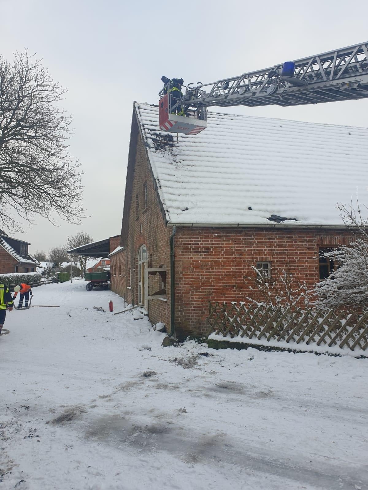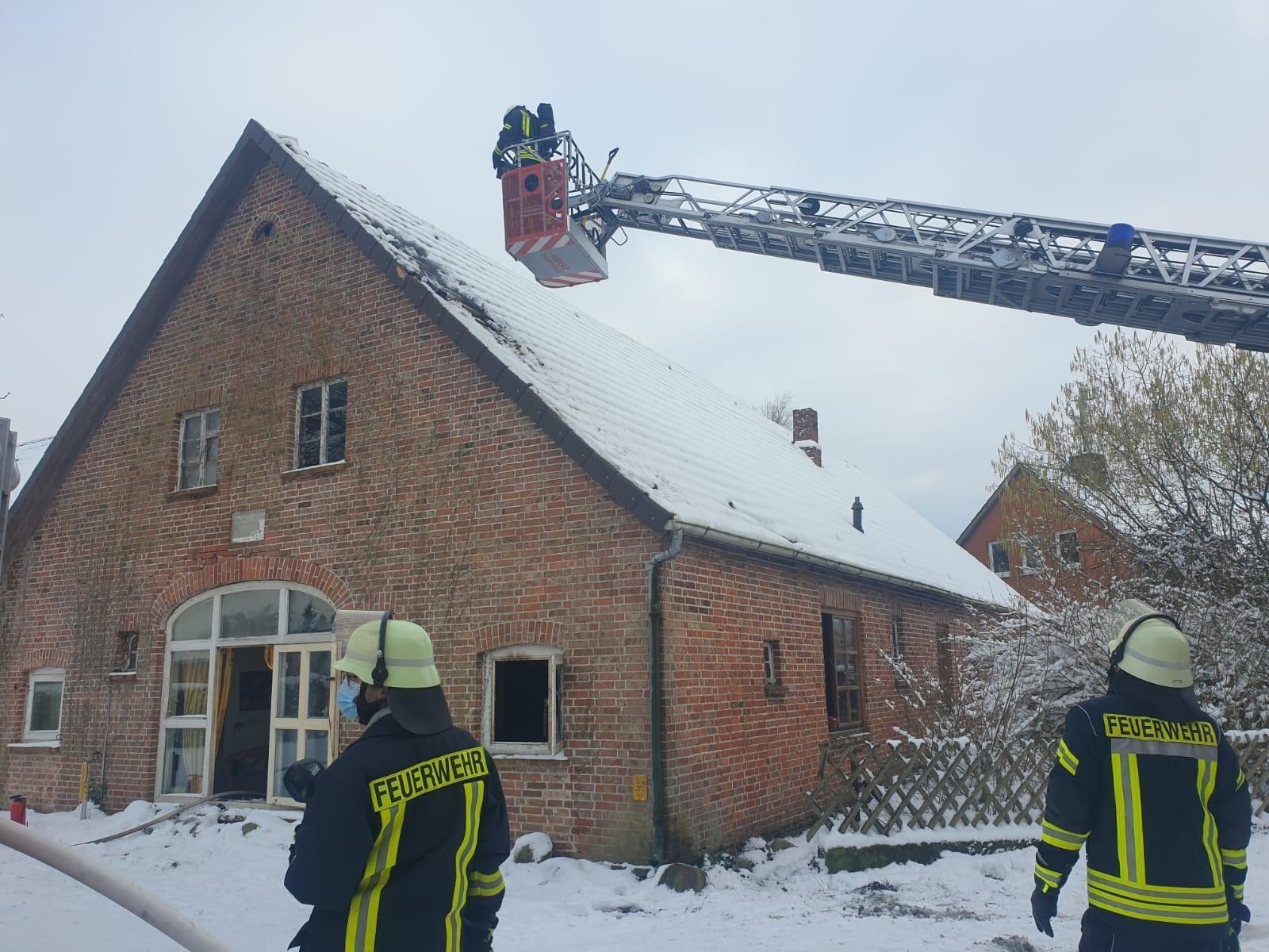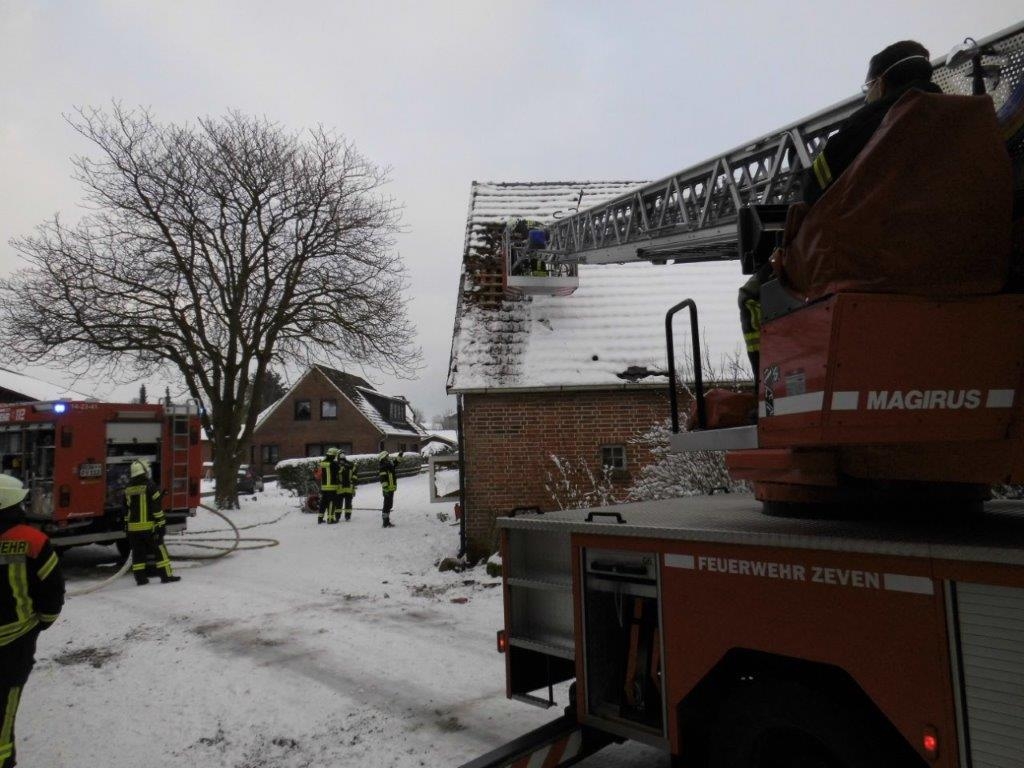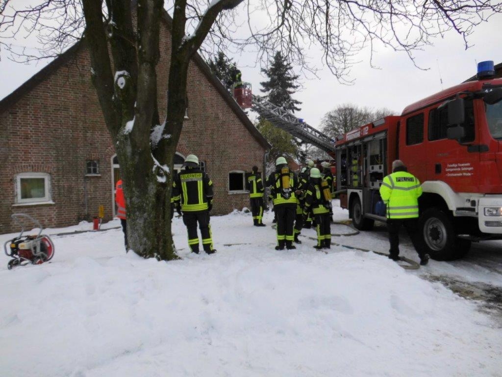 Die Feuerwehren aus Rhade,Rhadereistedt und Rockstedt sowie der Rettungsdienst aus Gnarrenburg wurden am 30.01.21 um 14:43 Uhr zu einer unklaren Rauchentwicklung aus einem Gebäude in Rhade in der Straße Feuerhörn alarmiert. Kurz nach Eintreffen an der Einsatzstelle ließ der Einsatzleiter die Drehleiter aus Zeven nachalarmieren, da Rauch aus dem Dachstuhl auf stieg. Auf Anfahrt der Einsatzkräfte aus Zeven wurde das Stichwort auf F3 erhöht und somit die Kräfte aus Selsingen und Ostereistedt in Marsch gesetzt. Umgehend durchsuchten Atemschutztrupps das Gebäude, da es zunächst unklar war wieviele Pesonen sich noch im Gebäude befinden wurde der Notarzt sowie beide Rettungswagen aus Zeven alarmiert.Es konnte leider nur noch eine Person aus dem Gebäude geborgen werden, weitere Personen befanden sich glücklicherweise nicht im Gebäude.Über die Drehleiter Zeven wurden Teile des Daches geöffnet. Aufgrund der unklaren Lage wurde auch der OrgL Rettungsdienst durch die Einsatzleitstelle für Rettungsdienst und Feuerwehr alarmiert. Ebenfalls vor Ort machten sich Führungskräfte der Kreisfeuerwehr und der Gemeindefeuerwehr ein Bild von der Lage vor Ort.sonstige Informationen