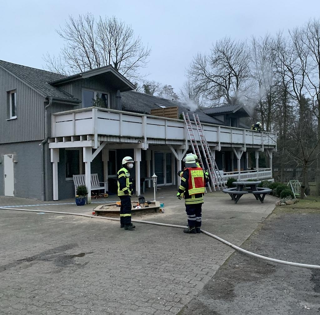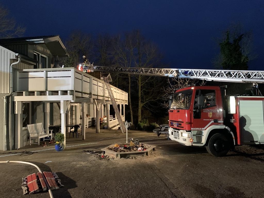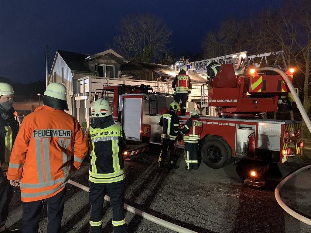 04.03.2021 Sittensen (as). Ein Küchenbrand ereignete sich am Donnerstagabend gegen 17.30 Uhr in einer Wohnung im ersten Obergeschoss in der Straße „Am Markt“. Gemeldet war zunächst eine unklare Rauchentwicklung. Auf der Anfahrt zum Feuerwehrhaus war bereits erkennbar, dass dichter Rauch aus dem Dachstuhl drang. Noch vor dem Eintreffen der ersten Fahrzeuge der Wehren Sittensen und Tiste wurde das Alarmstichwort erhöht. Und die Wehren Klein Meckelsen, Hamersen und Zeven mit der Drehleiter rückten ebenfalls an.