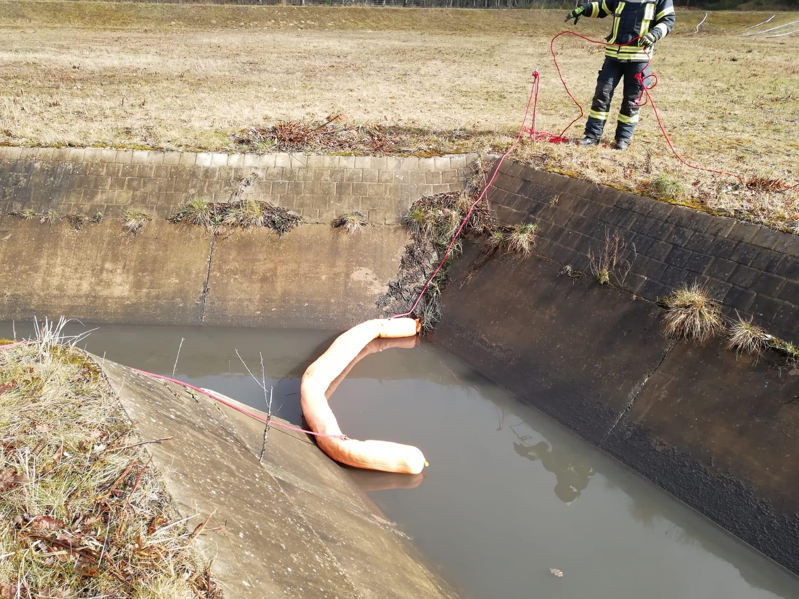 Ein geplatzter Hydraulikschlauch an einem Gabelstabler gab Anlass zur Alarmierung, Hydrauliköl abgebunden,Ölsperre gesetzt auf Regenrückhaltebecken gesetzt.sonstige Informationen