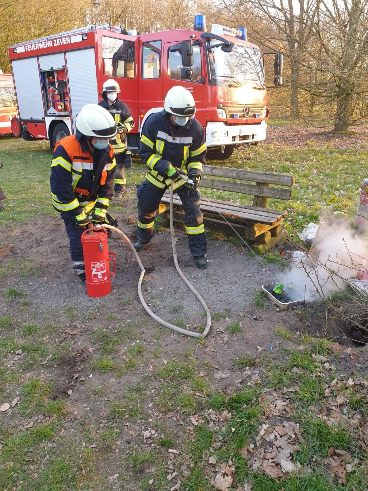 Die Feuerwehr Zeven wurde am 16.04.21 um 19:25 Uhr durch die Rettungsleitstelle alarmiert, Einsatzmeldung lautetete: brennt Unrat.