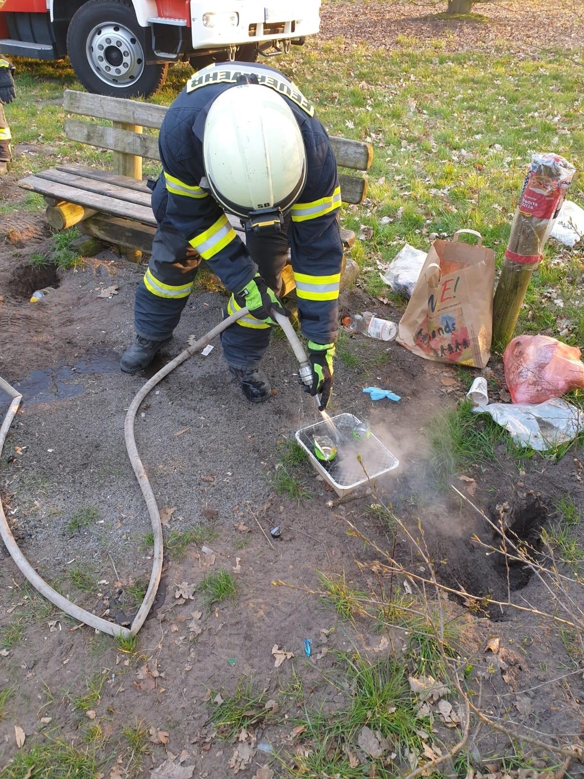 Mittels Kleinlöschgerät wurden die glimmenden Reste abgelöscht.