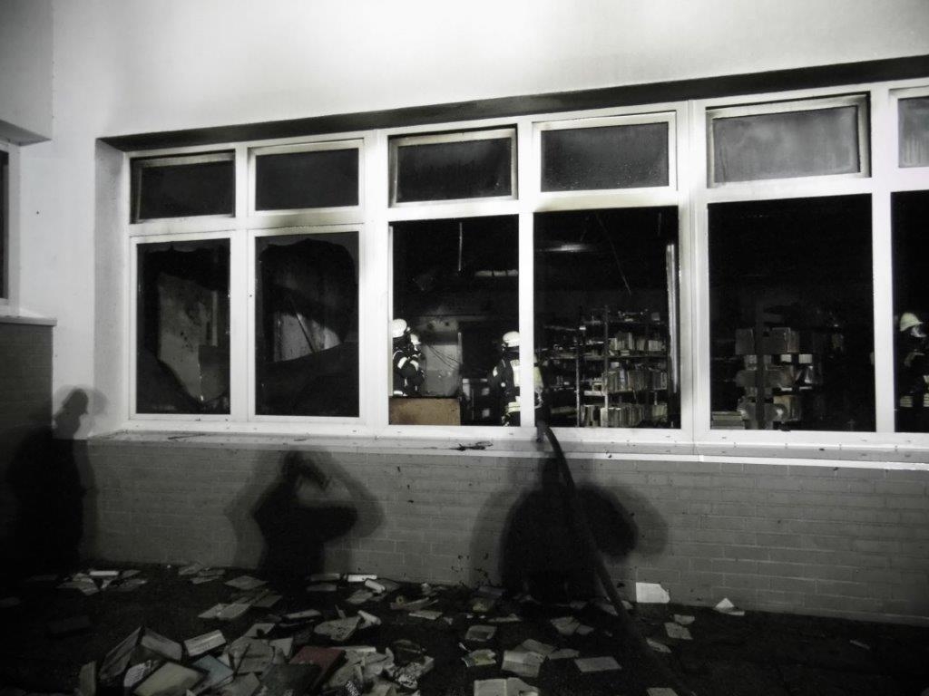 Als die ersten Einsatzkräfte der Feuerwehr Selsingen an der Schule eintrafen, waren offene Flammen in dem als Bücherei genutzten Raum zu erkennen. Einige Scheiben waren schon geborsten und dichter Rauch drang aus dem Gebäude. Das Selsinger Tanklöschfahrzeug war an der Rückseite in Stellung gegangen (Im Sick) und nahm den ersten Angriff mit einem C-Rohr im Aussenangriff vor. Das Hilfeleistungslöschfahrzeug aus Selsinger fuhr die Schule über die Rosenstraße an und ging von der Vorderseite mit einem Atemschutztrupp zum Innenangriff mit einem C-Rohr vor. Die Drehleiter aus Zeven wurde zur Kontrolle des Flachdaches ebenfalls in Stellung gebracht. Durch den schnellen Löschangriff von zwei Seiten ( Innen- und Außenangriff) konnte das Feuer schnell unter Kontrolle gebracht und weiterer Gebäudeschaden verhindert werden. Im weiteren Verlauf wurde der vom Brand betroffene und die angrenzenden Bereiche mit Wärmebildkameras kontrolliert. Nach Abschluss der Löscharbeiten wurde mit Hilfe von Hochleistungslüftern das Gebäude noch rauchfrei gemacht.