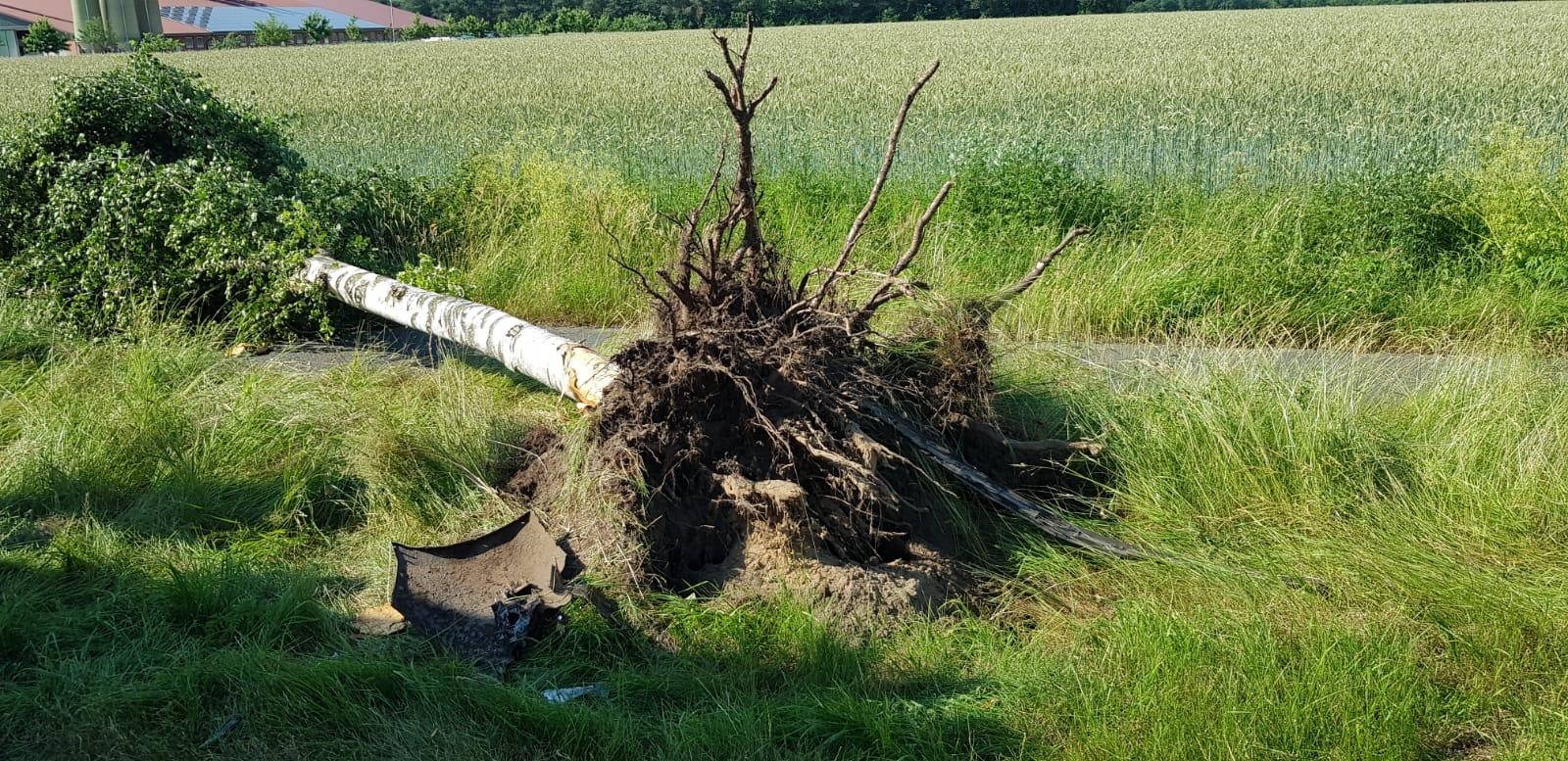 Godenstedt(tw) Alam für die Ortsfeuerwehren aus Seedorf,Selsingen und Zeven sowie dem Rettungsdienst aus Zeven und Bremervörde zu einem Verkehrsunfall mit einer eingeklemmten Person auf der K 143 zwischen Godenstedt und Rockstedt am 25.06.21 um 16:43 Uhr. Der Fahrer des PKW hat zunächst eine Birke entwurzelt und ist danach mit seinem Fahrzeug auf die andere Straßenseite geschleudert worden. Auf Anfahrt der alarmierten Kräfte kam seitens der Rettungsleitstelle die Information, die Person sei nicht mehr eingeklemmt. Aufgrund der schwere der Verletzungen hat man sich zu einer schonenden Rettung entschieden. Hierbei wurde zunächst eine Zugangsöffnung für den Rettungsdienst geschaffen (Türen und Scheiben entfernt) und anschließend das Dach entfernt.Im weiteren Einsatzverlauf wurde noch ein Rettungshubschrauber angefordert. Der Patient wurde mit dem Rettungshubschrauber n das Krankenhaus nach Rotenburg geflogen.