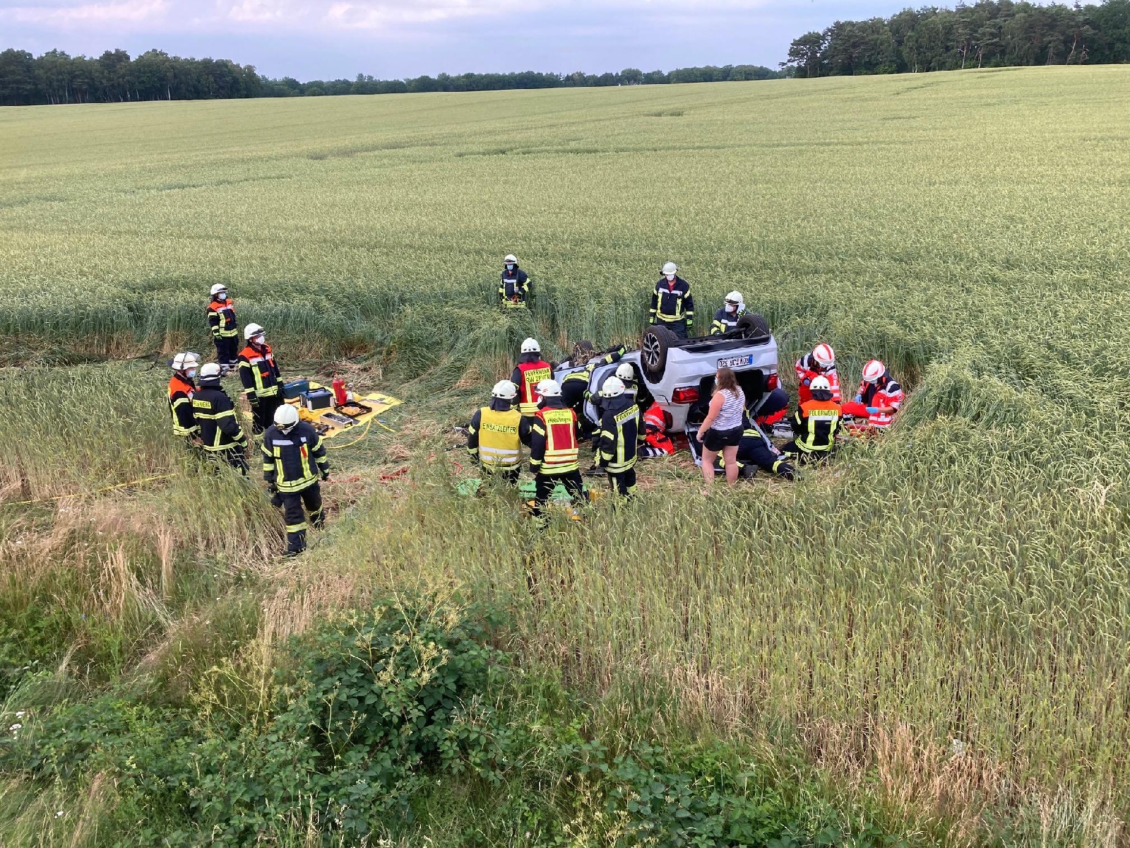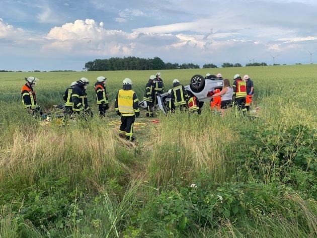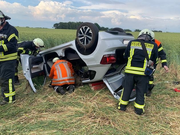 Osterheeslingen (as). Auf der Kreisstraße 130 zwischen Osterheeslingen und Weertzen ereignete sich am Montagabend gegen 18.20 Uhr ein schwerer Verkehrsunfall. Ein VW-Polo war aus ungeklärter Ursache von der Fahrbahn abgekommen und landete auf dem Dach im angrenzenden Getreidefeld. Zwei Personen befanden sich im Fahrzeug. Eine davon war bei Eintreffen der Feuerwehr bereits befreit. Der Beifahrer war nicht eingeklemmt in dem Fahrzeug, aber er klagte über Rückenschmerzen, sodass eine patientenschonende Rettung notwendig war.