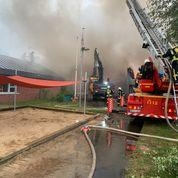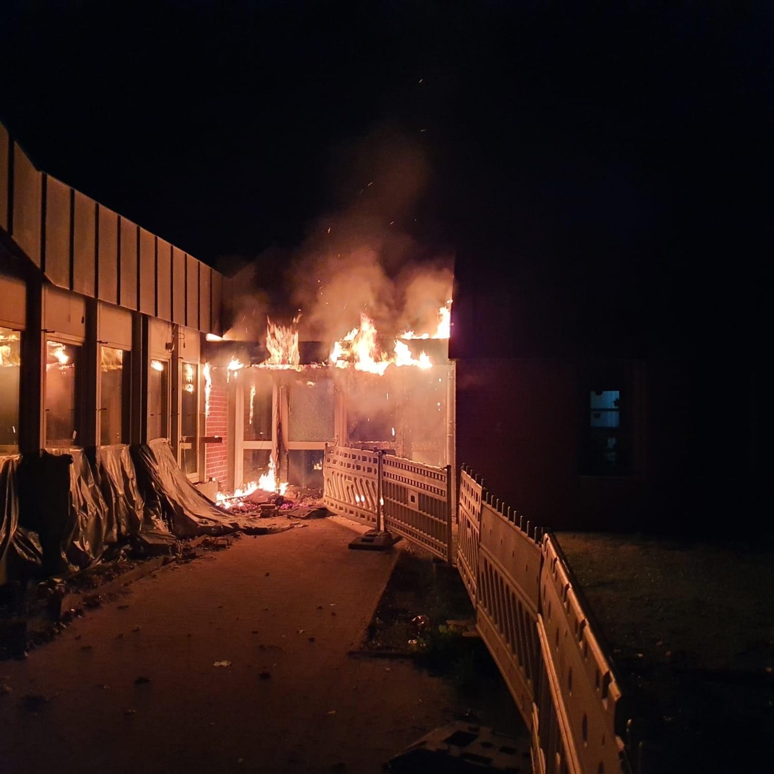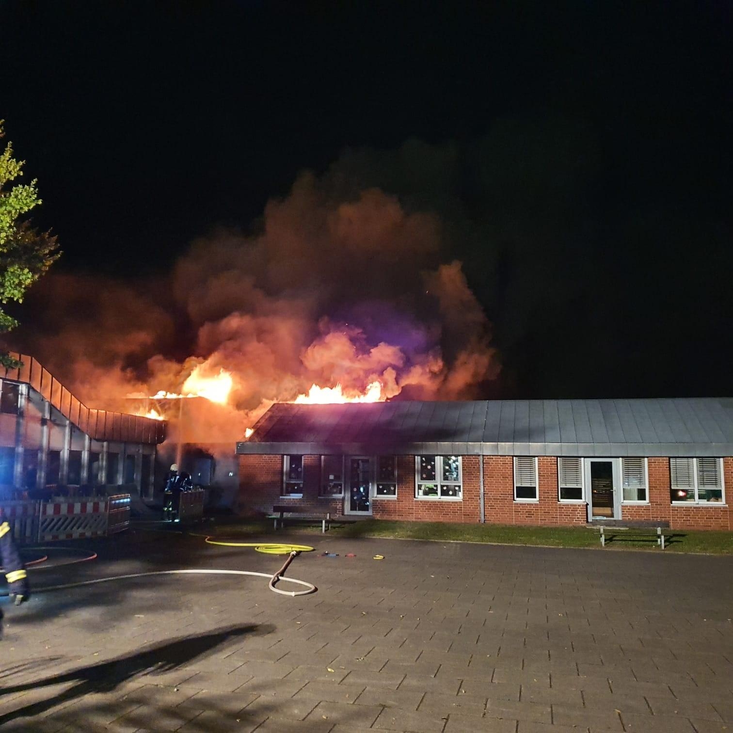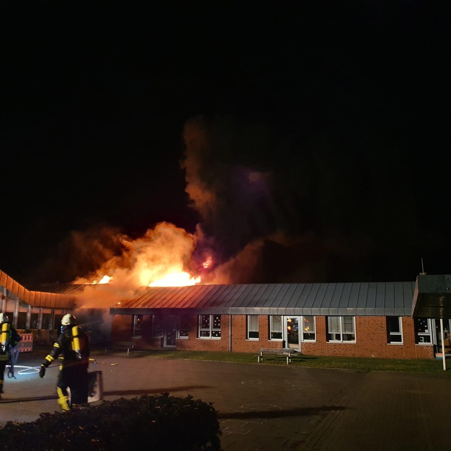 Um kurz nach drei Uhr wurde der Feuerwehr per Notruf auf dem Gelände des Mehrgenerationenhaus in Zeven, beim dortigen Kindergarten, ein Feuer gemeldet. Umgehend wurden die Feuerwehren aus Zeven, Brauel und Heeslingen an die Einsatzstelle alarmiert. Durch den mitalarmierten Rettungsdienst konnte das Feuer kurz darauf bestätigt werden und es wurde sofort die Alarmstufe erhöht und eine zusätzliche Drehleiter (aus Bremervörde) dazu alarmiert. Als die ersten Kräfte aus Zeven an der Einsatzstelle eintrafen, hatte sich auf der Rückseite des Gebäudes die Flammen bereits in den Dachstuhl "gefressen" und begannen sich dort weiter auszubreiten. Sofort wurde ein Löschangriff mit mehreren Strahlrohren vorgenommen. Parallel dazu wurden die beiden Drehleitern aus Zeven und Bremervörde in Stellung gebracht und auch von dort mit der Brandbekämpfung angefangen. Auch von der Gebäudevorderseite wurden weitere Strahlrohre zur Brandbekämpfung eingesetzt. Wie sich im Verlauf herausstellte, gestalteten sich die Löschmaßnahmen schwierig und zeitaufwendig, da große Teile des Daches mit Blechplatten gedeckt war und erst mit speziellen Sägen Löcher in die Dachhaut geschnitten werden mussten, um an das Feuer zu gelangen. Da diese Arbeiten und die Brandbekämpfung nur unter schweren Atemschutz durchgeführt werden konnten, wurden noch weitere Feuerwehren mit Atemschutzgeräteträger an der Einsatzstelle benötigt. Insgesamt kamen während des Einsatzes 70 Atemschutzgeräteträger zum Einsatz. Im weiteren Verlauf des Einsatzes wurde noch ein Bagger an die Einsatzstelle beordert, um das Dach bzw. das Gebäude zu öffnen, damit man besser an den Brand und später an die Glutnester heran kam. Die Löscharbeiten zogen sich über mehrere Stunden hin. Gebäudeteile die nicht direkt vom Brand betroffen waren, konnten von der Feuerwehr gehalten werden, können aber Aufgrund von Rauchbeaufschlagung und zum Teil durch Löschwasser nicht genutzt werden. Der benachbarte, direkt angrenzende Kindergarten konnte Dank einer massiven Brandschutzwand gehalten werden. Im angrenzenden Wohngebiet wurden durch die Meßgruppe des Gefahrgutzuges Messungen durchgeführt, da es während des Brandes zu einer starken Rauchentwicklung kam. Die Bevölkerung wurde über Radio entsprechend gewarnt.Vor Ort machten sich von Seiten des Betreibers, der Stadt Zeven und Führungskräfte der Kreis- und Gemeindefeuerwehr während des Einsatzes ein Bild der Lage. Der Energieversorger und der Bauhof Zeven waren ebenfalls vor Ort. Erste, nicht mehr benötigte Einsatzkräfte konnten gegen 9:00 Uhr die Einsatzstelle wieder verlassen. Die Lösch- und Nachlöscharbeiten zogen sich dann noch bis ca. 11:00 Uhr hin. Während des gesamten Einsatzes unterstütze des DRK aus Zeven und Bremervörde die Löscharbeiten mit bereitgestellten Rettungsmitteln und dem Versorgungszug. Die Drohnengruppe des DRK sorgte für entsprechende Luftaufnahmen.
