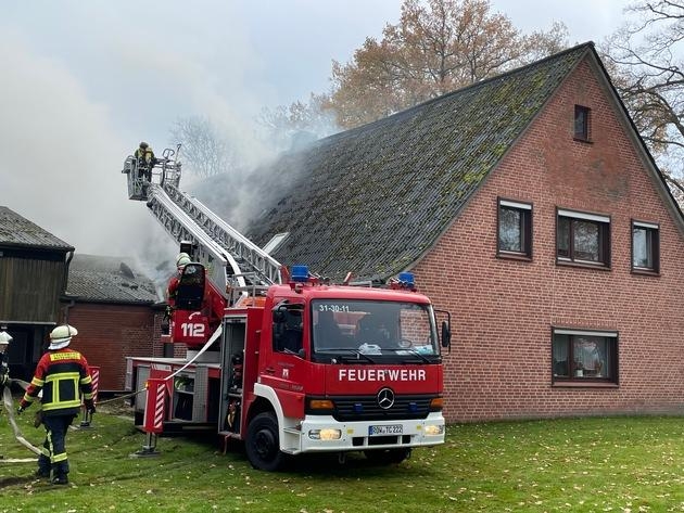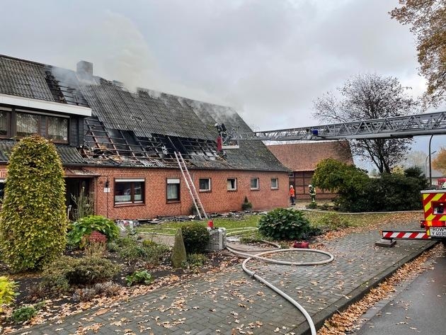 Die Löscharbeiten dauerten bis in den späten Abend, da das Stroh zum Teil händisch vom Dachboden geholt werden musste. Ein angeforderter Bagger konnte hier nur unterstützend tätig werden. Die Bewohner konnten sich rechtzeitig aus dem Gebäude retten und wurden nicht verletzt. Der Rettungsdienst betreute bis zum Eintreffen des Kriseninterventionsteams des DRK die Bewohner und Angehörigen.