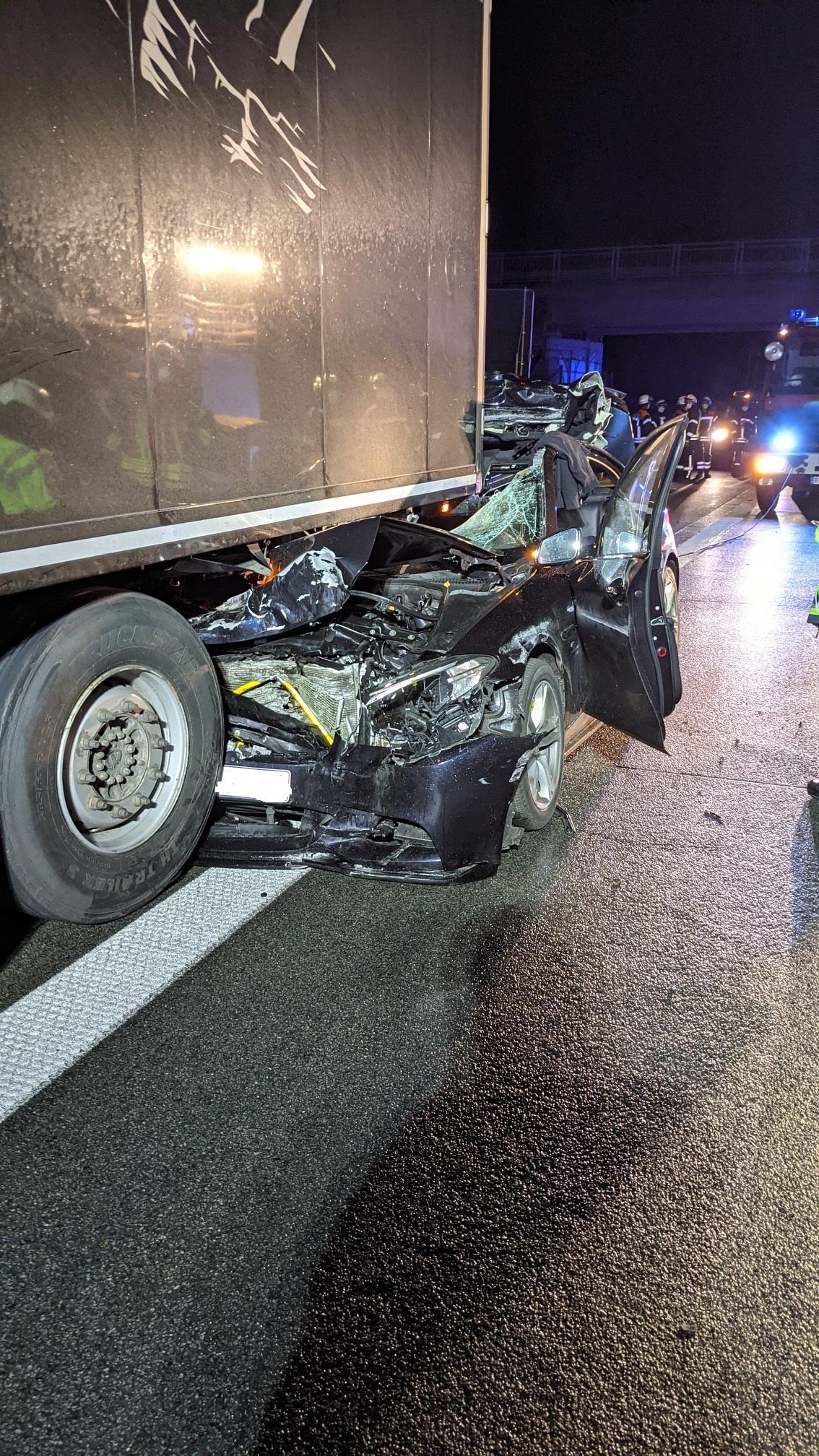 A1/Elsdorf. In der vergangenen Nacht musste die Autobahn 1 in Fahrtrichtung Hamburg aufgrund eines schweren Verkehrsunfalls kurz nach 22 Uhr voll gesperrt werden. Nach bisherigen Erkenntnissen kam ein 24-jähriger Mann aus dem Kreis Damme mit seinem BMW aus bislang ungeklärter Ursache von der Fahrbahn ab und kollidiert mit der Leitplanke in der Mitte der Autobahn. Anschließend wurde das Fahrzeug über die Fahrbahn nach rechts geschleudert. Hier prallte der Wagen mit einem auf dem rechten Fahrstreifen fahrenden Sattelzug eines 59-Jährigen zusammen. Durch die Wucht des Aufpralls wurde der BMW unter den Auflieger des Sattelzugs gedrückt. Zahlreiche Rettungskräfte waren im Einsatz, darunter die Feuerwehren Elsdorf, Zeven und Gyhum. Für den jungen Mann kam jedoch jede Hilfe zu spät, er verstarb noch an der Unfallstelle. Der Lkw-Fahrer stand unter Schock und wurde durch den Notdienst medizinisch versorgt.