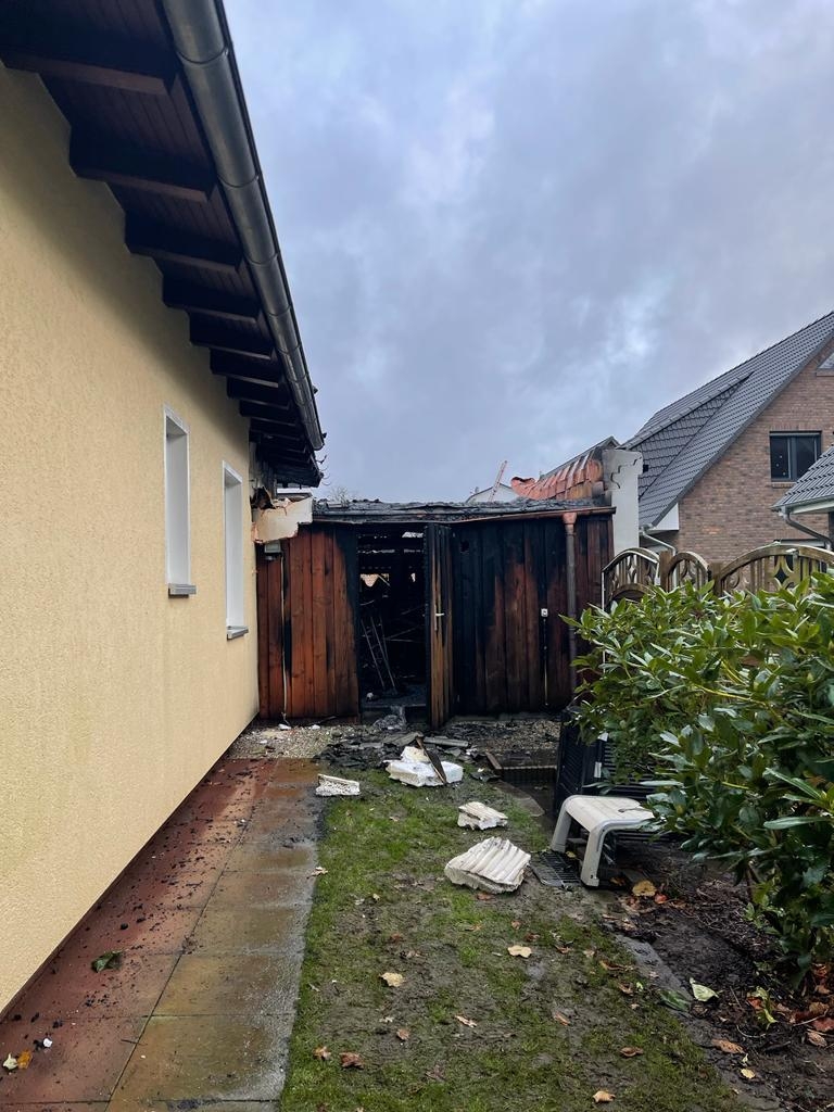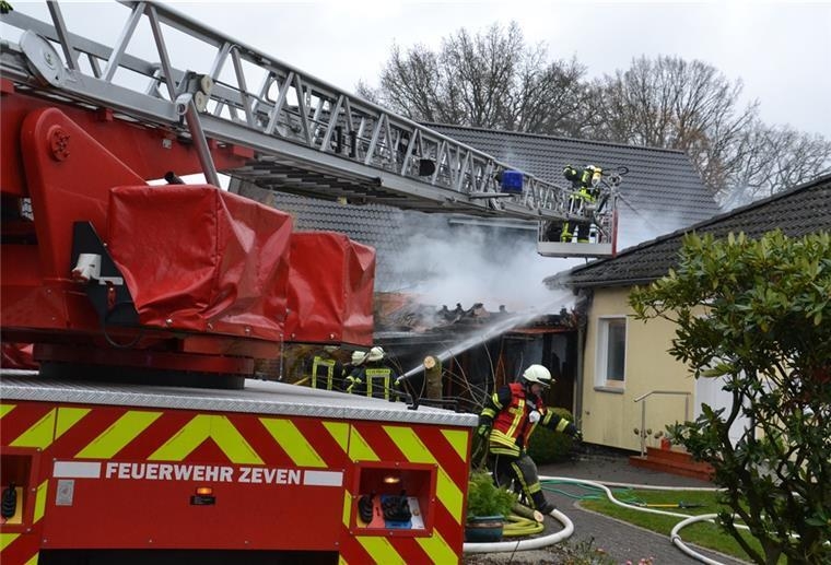 Zeven(tw) Die Ortsfeuerwehr Zeven wurde heute morgen um 10:21 Uhr gemeinsam mit der FF Brauel zu einem brennenden Carport im Zevener Stuhmer Weg alarmiert. Bei Eintreffen des Einsatzleiters stand der Geräteschuppen in Vollbarnd und hatte bereits auf das Wohnhaus übergegriffen. Umgehend wurde das Alarmstichwort auf F3 erhöht und die Feuerwehren aus Heeslingen und Brüttendorf nachgefordert. Mit mehreren C Rohren und mit Unterstützung der Drehleiter konnte das Wohnhaus gehalten werden. Teile des Daches wurden geöffnet und mit der Wärmebildkamera kontrolliert. An dem hözernen Anbau entstand Totalschaden. Die Einsatzkräfte wurden durch die Besitzer für ihr umsichtiges und schnelles Handeln gelobt.sonstige Informationen