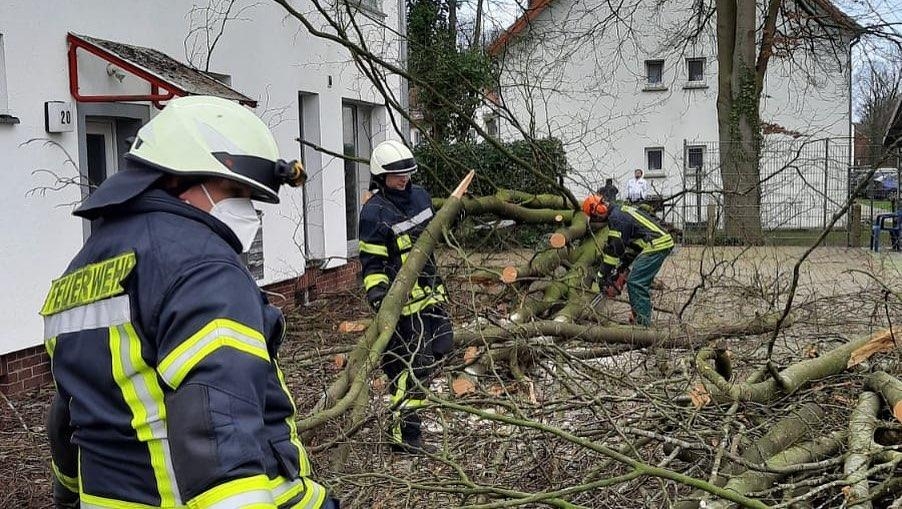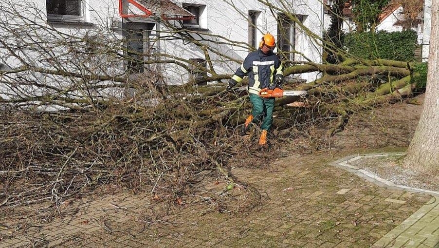 Baum stürzt auf Gebäude - Am Sonntagmittag folgte der nächste sturmbedingte Einsatz. Ein Baum war direkt an einem Gebäude umgestürzt und wurde durch die Feuerwehr umgehend entfernt.sonstige Informationen