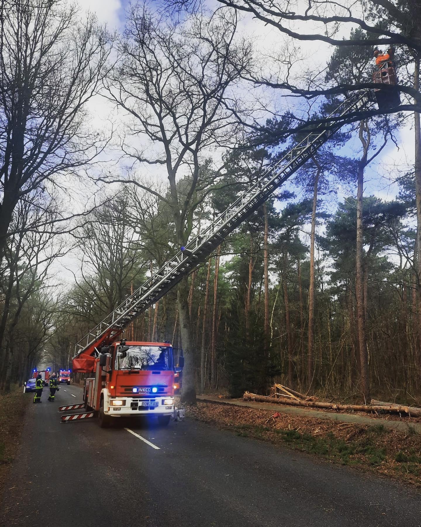 Ast droht herabzustürzen - Noch während die Einsatzkräfte den letzten Einsatz am Feuerwehrhaus nachbereiten, geht eine weitere Alarmierung ein. Erneut war das Zusammenspiel von Wind, Schwerkraft und Bäumen ursächlich… Die Einsatzkräfte konnten dementsprechend schnell ausrücken und die Gefahr bannen.sonstige Informationen