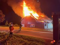 Wie es zu dem Brand gekommen war, ermittelt nun die Polizei. Die angrenzende Landesstraße musste für den Verkehr voll gesperrt werden. Für die letzten Feuerwehren war der Einsatz gegen 6.30 Uhr beendet. Das Gebäude wurde vollständig zerstört. Zu Schadenshöhe können seitens der Feuerwehr keine Angaben gemacht werden.