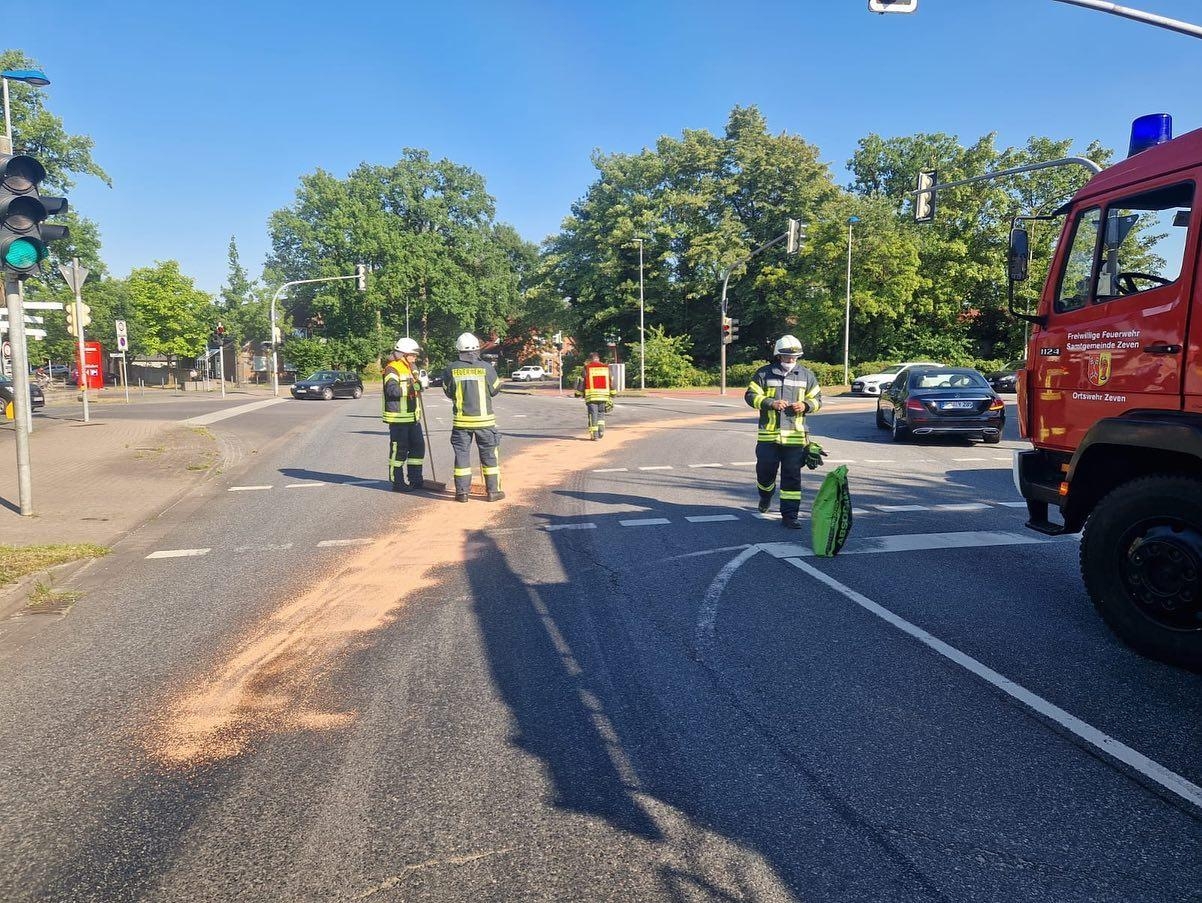 StraßenverunreinigungWarm war es bereits schon durch die sommerlichen Temperaturen, doch am Mittwochabend ging es dennoch für einige Angehörigen der Feuerwehr Zeven in die Einsatzklamotten.