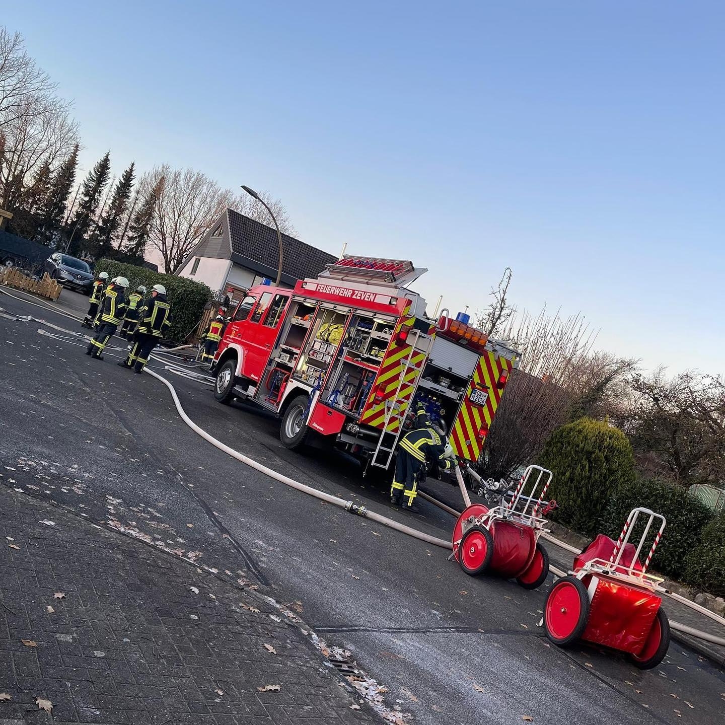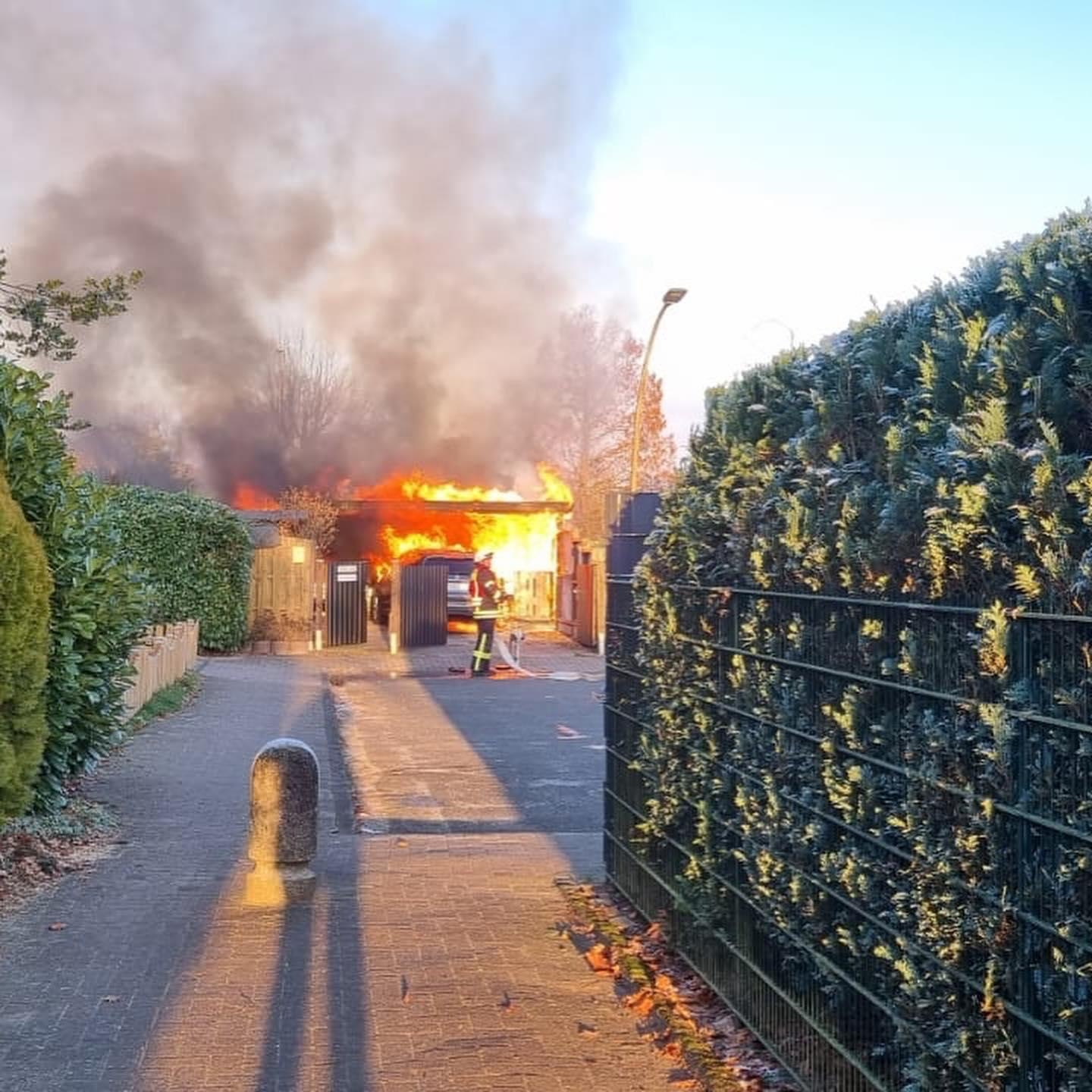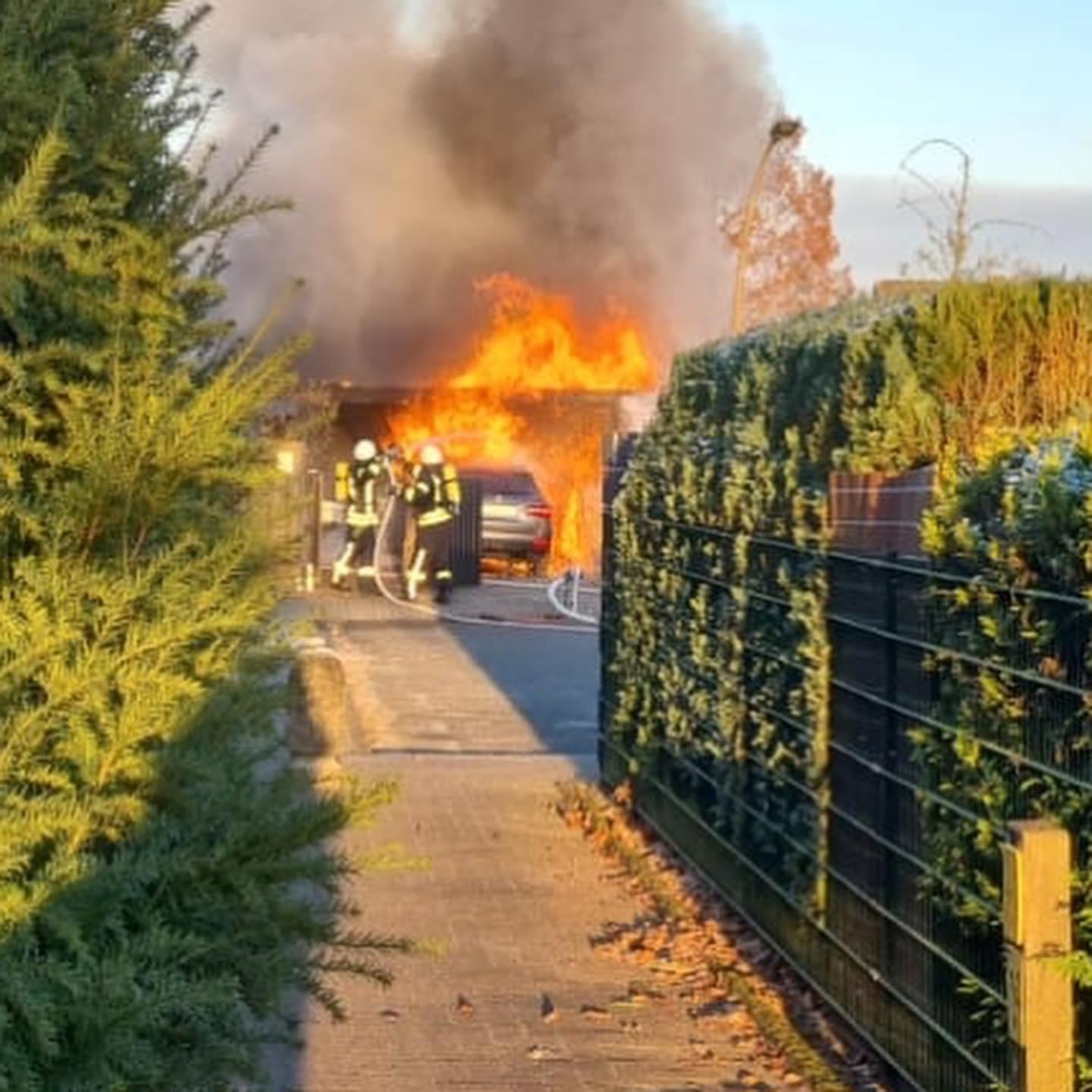 Am Donnerstagnachmittag wurde die Feuerwehr Zeven zu einem brennenden Carport im Stadtgebiet alarmiert. Bei Eintreffen der Einsatzkräfte stand ein Fahrzeug und das Carport lichterloh in Flammen.