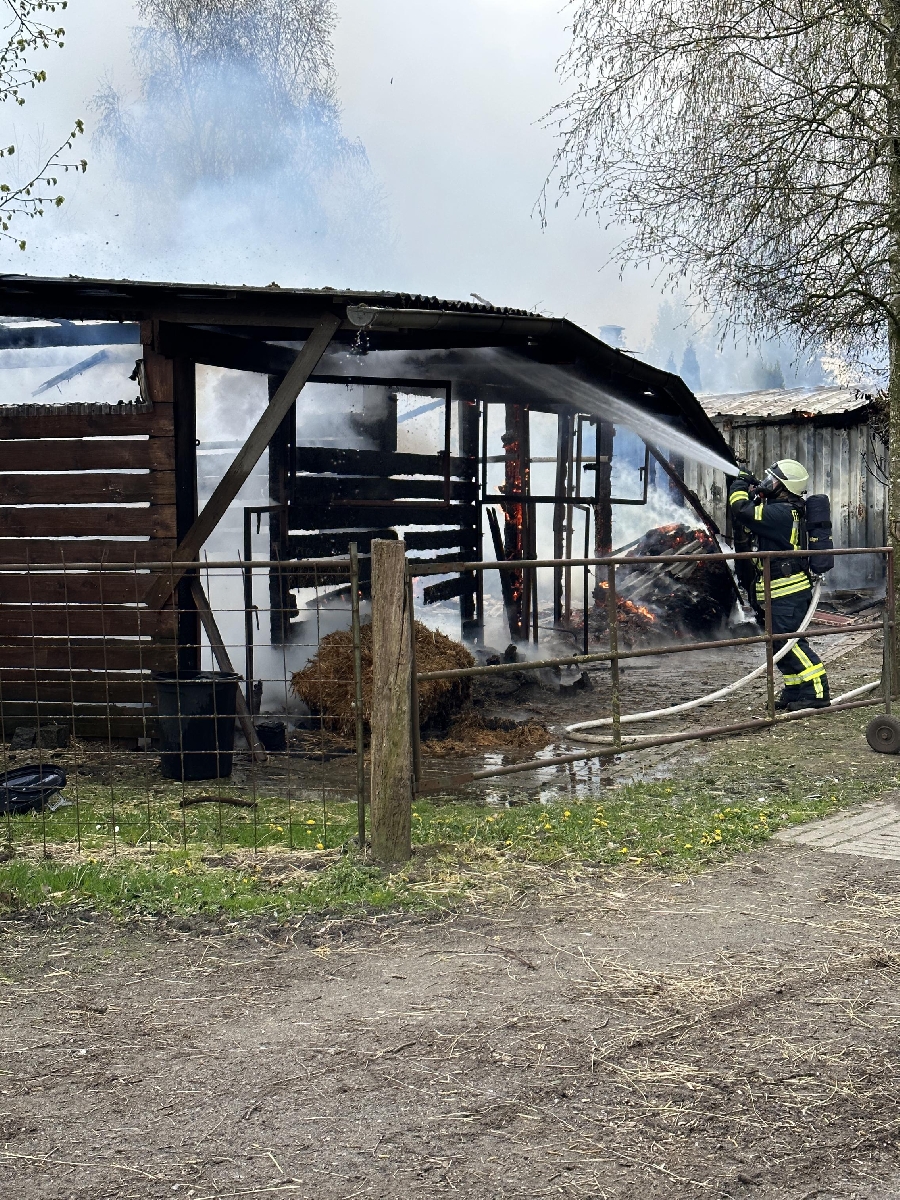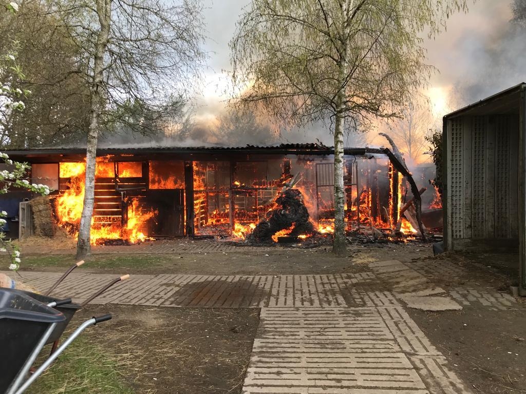 Pferdestall steht in FlammenWeertzen(cm). Am Mittwochmittag kam es zu einem Brand in einem Pferdestall am Weertzener Ortsrand. Bei Eintreffen der Freiwilligen Feuerwehren stand der Stall bereits in Vollbrand. Unter Atemschutz wurde schnell die Brandbekämpfung eingeleitet. Aus den angerückten Tanklöschfahrzeugen wurde zunächst die vier Strahlrohre gespeist mit Wasser versorgt, während parallel eine Wasserleitung zum nächstgelegenen Hydranten im Dorf aufgebaut wurde. Durch den Einsatz von Löschschaum und einer Drehleiter konnte das Feuer schnell gelöscht werden. Somit konnte die die Ausbreitung auf weitere Stallungen verhindert werden. Der betroffene Stall konnte bis zu zehn Pferde beherbergen, welche sich glückerweise auf den umliegenden Wiesen aufhielten und so nicht zu Schaden gekommen sind. Die Brandursache ist unklar, weshalb die Polizei die Ermittlungen direkt nach dem Einsatz aufgenommen hat.