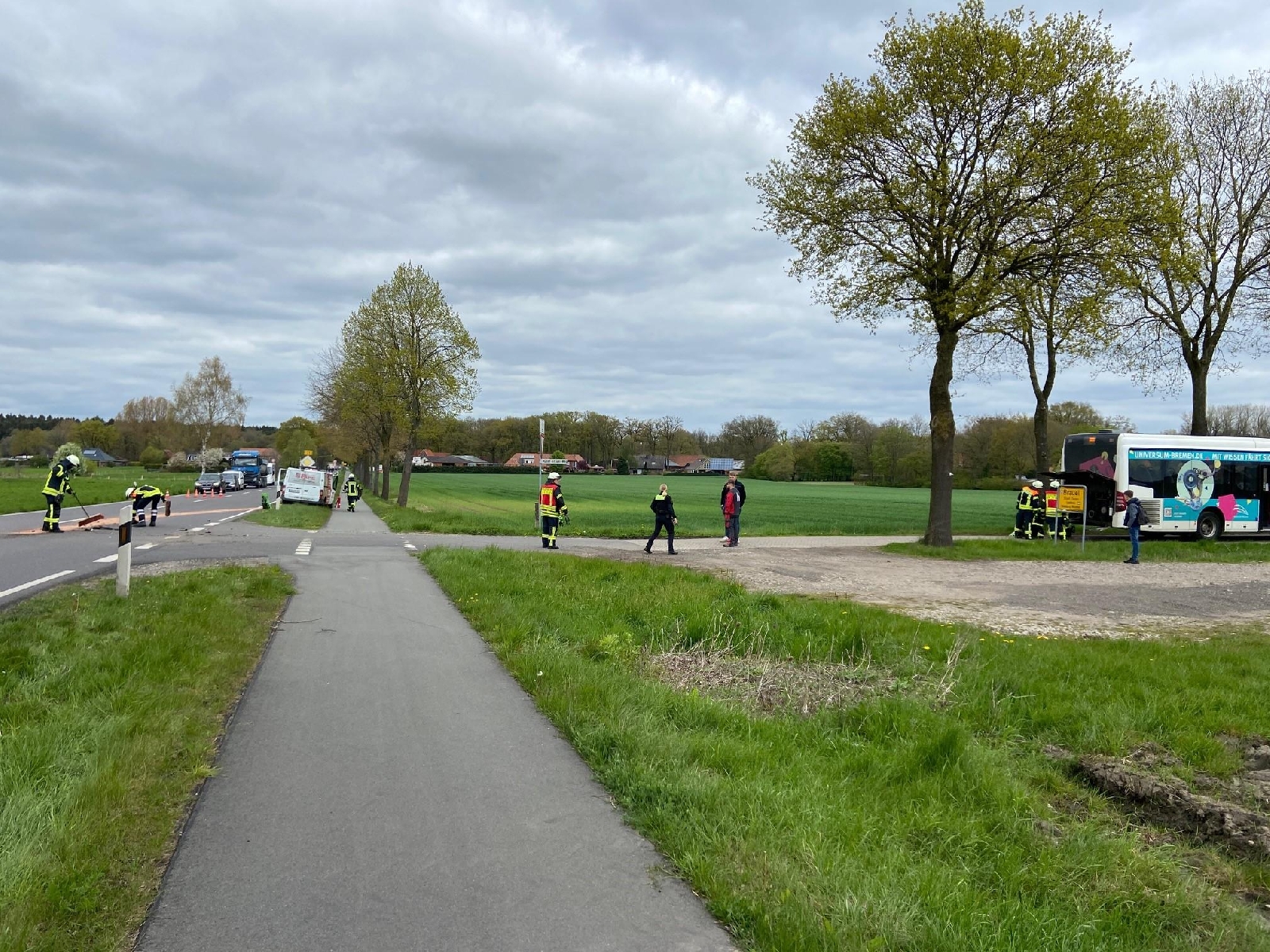 Die hinzugerufene Feuerwehr Zeven sicherte die Unfallstelle ab, nahm ausgelaufene Betriebsstoffe auf und klemmte die Batterie des Transporters ab. Außerdem wurde eine gerissene Kühlerleitung des Linienbusses notdürftig abgedichtet, damit kein weiteres Kühlmittel austreten kann.