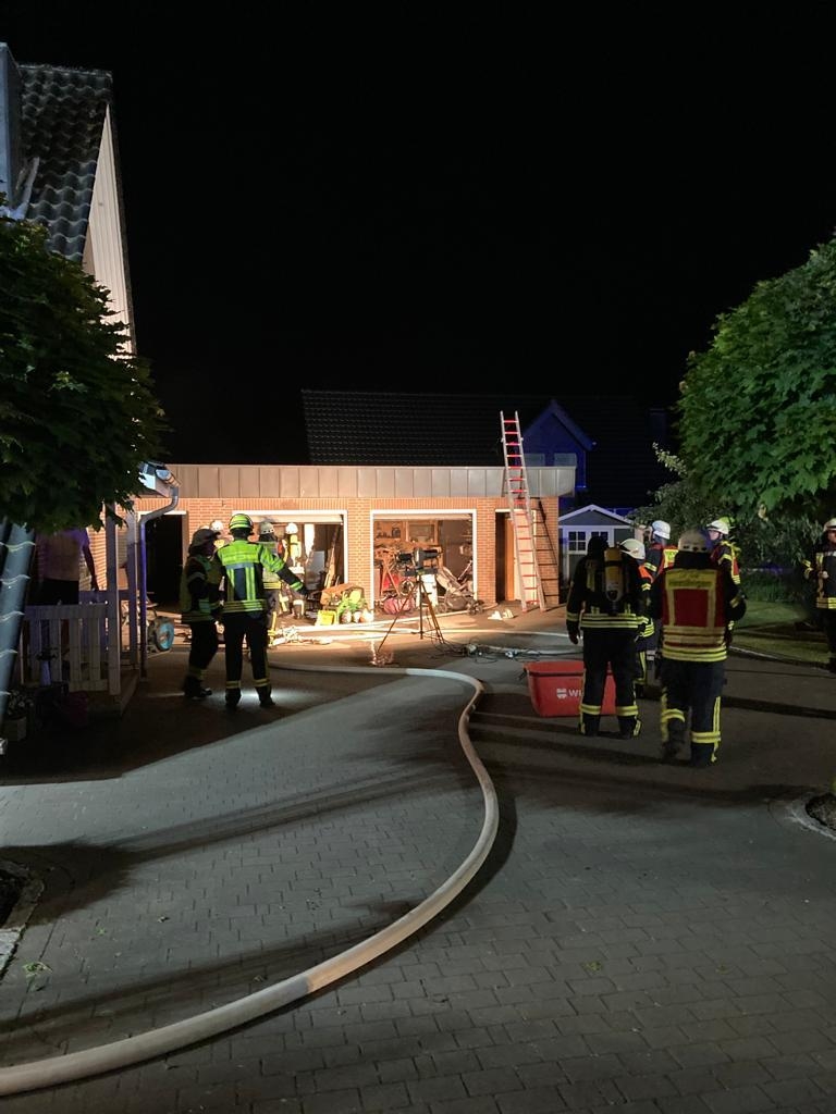 Am Sonntagabend wurde der Rettungsleitstelle eine starken Rauchentwicklung aus einer Garage gemeldet. Die Feuerwehren wurden um 23:29 Uhr durch die Rettungsleitstelle alarmiert und machten sich sofort auf den Weg zum Einsatzort. Vorort angekommen, ging nach der Erkundung durch den Gruppenführer ein Trupp unter schwerem Atemschutz mit einem Rohr zur Brandbekämpfung in die Garage vor. Der Auslöser wurde schnell gefunden (brannte Akkupaket einer PV Anlage) und es konnte eine weitere Ausbreitung verhindert werden. Für die Nachlöscharbeiten wurde die Dachhaut zum Teil geöffnet und mit einer Wärmebildkamera kontrolliert.