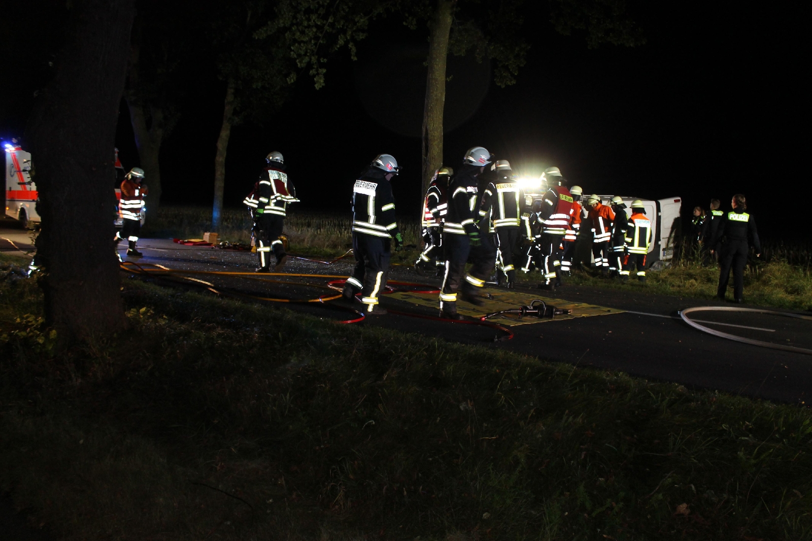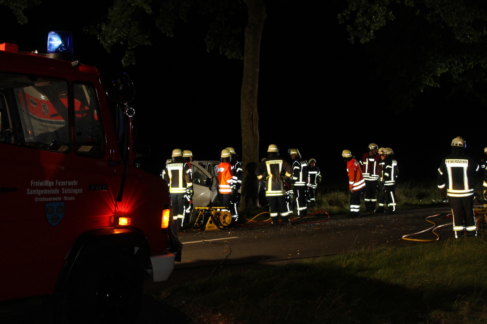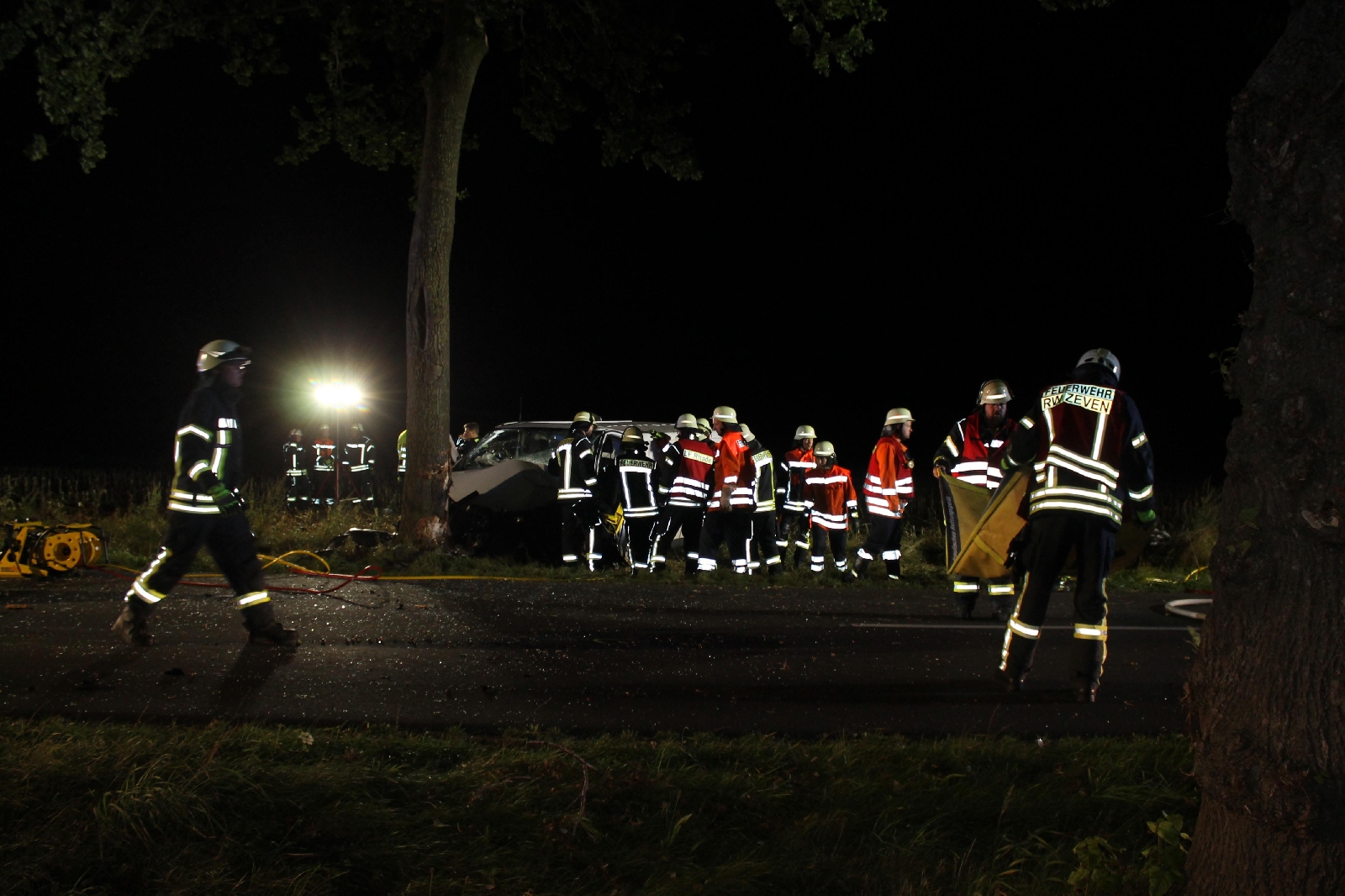 Lavenstedt(bs). Am Dienstagabend gegen 23.47 Uhr alarmierte die Rettungsleitstelle die Ortswehren Lavenstedt, Selsingen, Rhade und Zeven zu einem Verkehrsunfall mit eingeklemmter Person. Auf der der K119 kam ein Transporter Fahrer aus noch unerklärlichen Gründen rechts von der Fahrbahn ab und prallte frontal gegen einen Baum. Der Fahrzeugführer wurde in seinem Fahrzeug eingeklemmt und musste von der Feuerwehr mittels schweren Rettungsgerätes befreit werden. Der Fahrer wurde während des Einsatzes vom Rettungsdienst versorgt und anschließend in ein Krankenhaus gebracht.