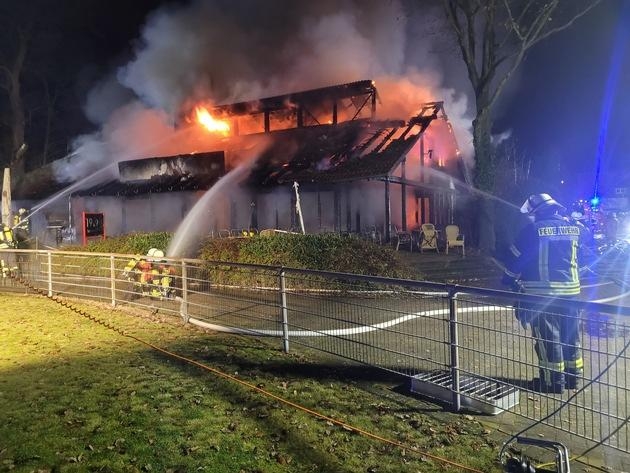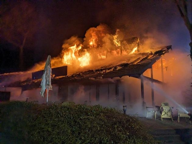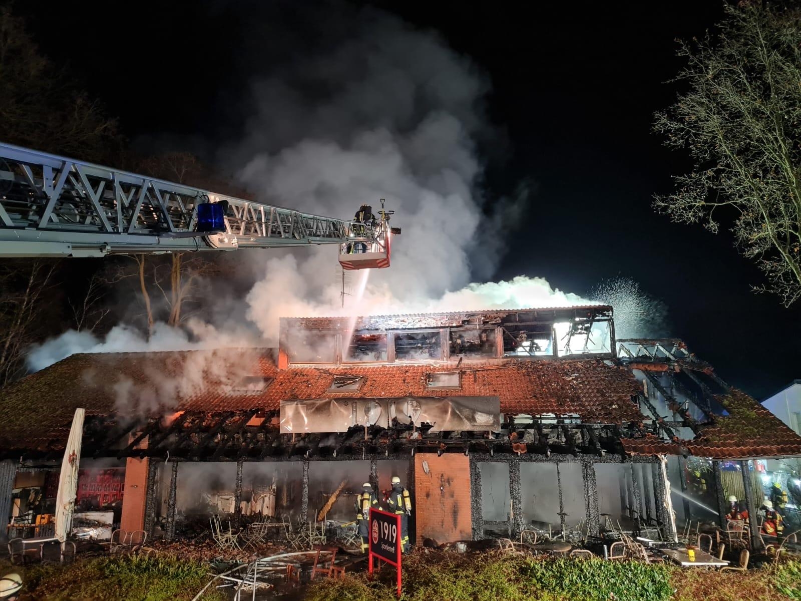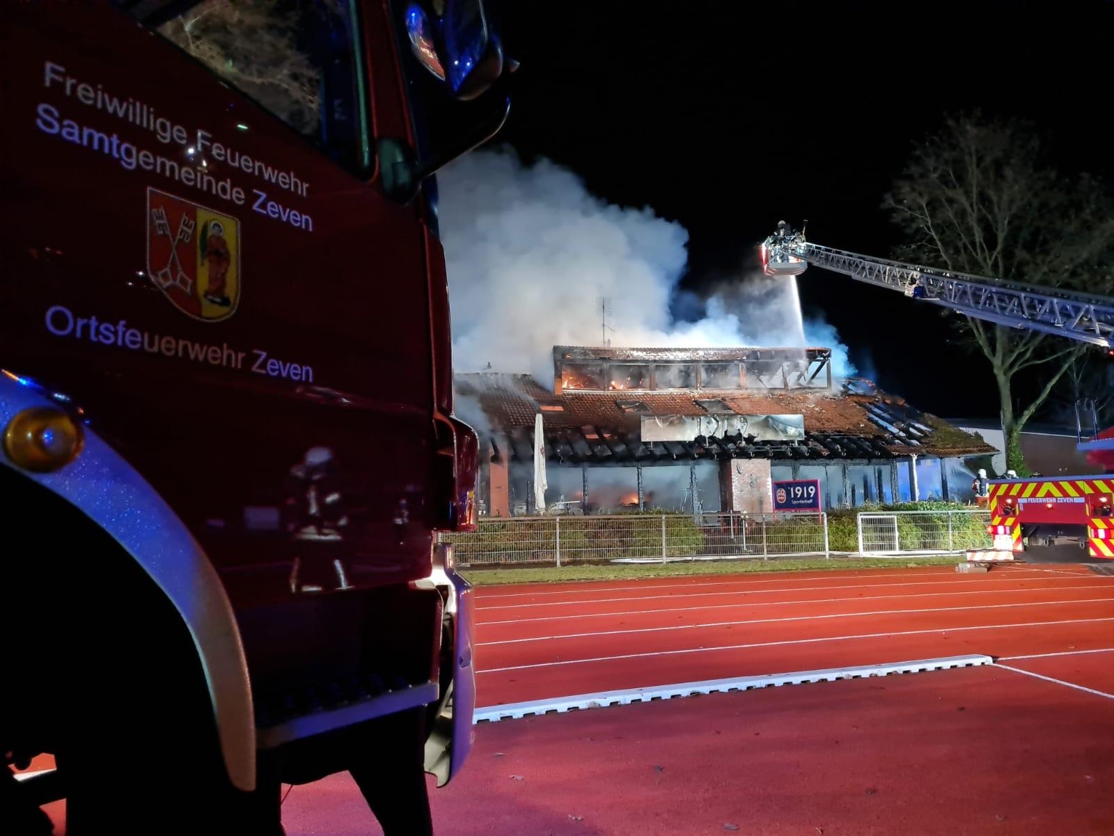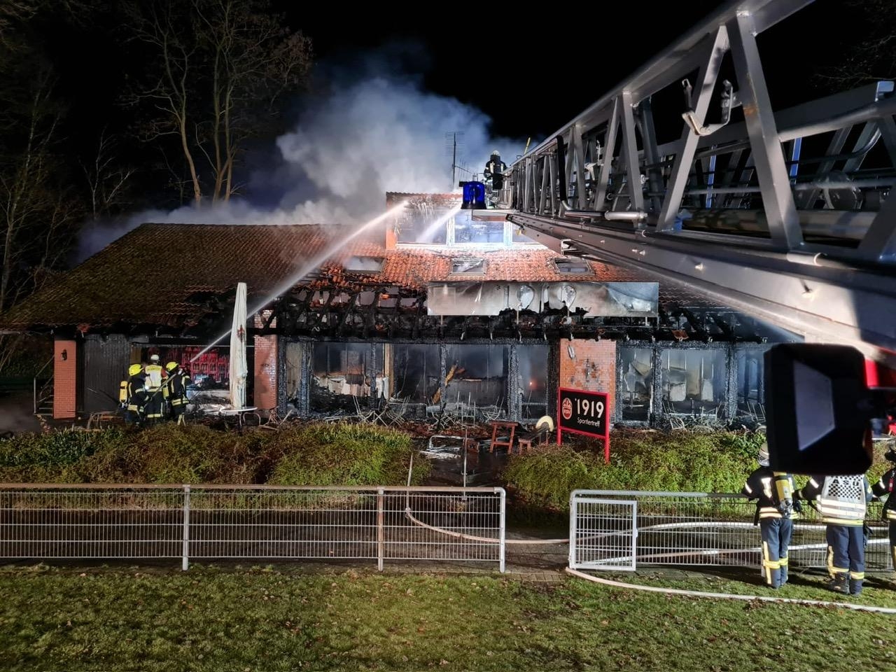 Bereits bei Eintreffen der ersten Kräfte aus Rotenburg, war das Sportlerheim mit Gaststätte in Flammen gehüllt. Das Feuer war bereits auf das Dachgeschoss übergegriffen, sodass ein Innenangriff für die Feuerwehrleute, aufgrund der Einsturzgefahr des Daches, nicht mehr möglich war. Glücklicherweise befanden sich zum Zeitpunkt des Brandes keine Personen mehr im Gebäude.