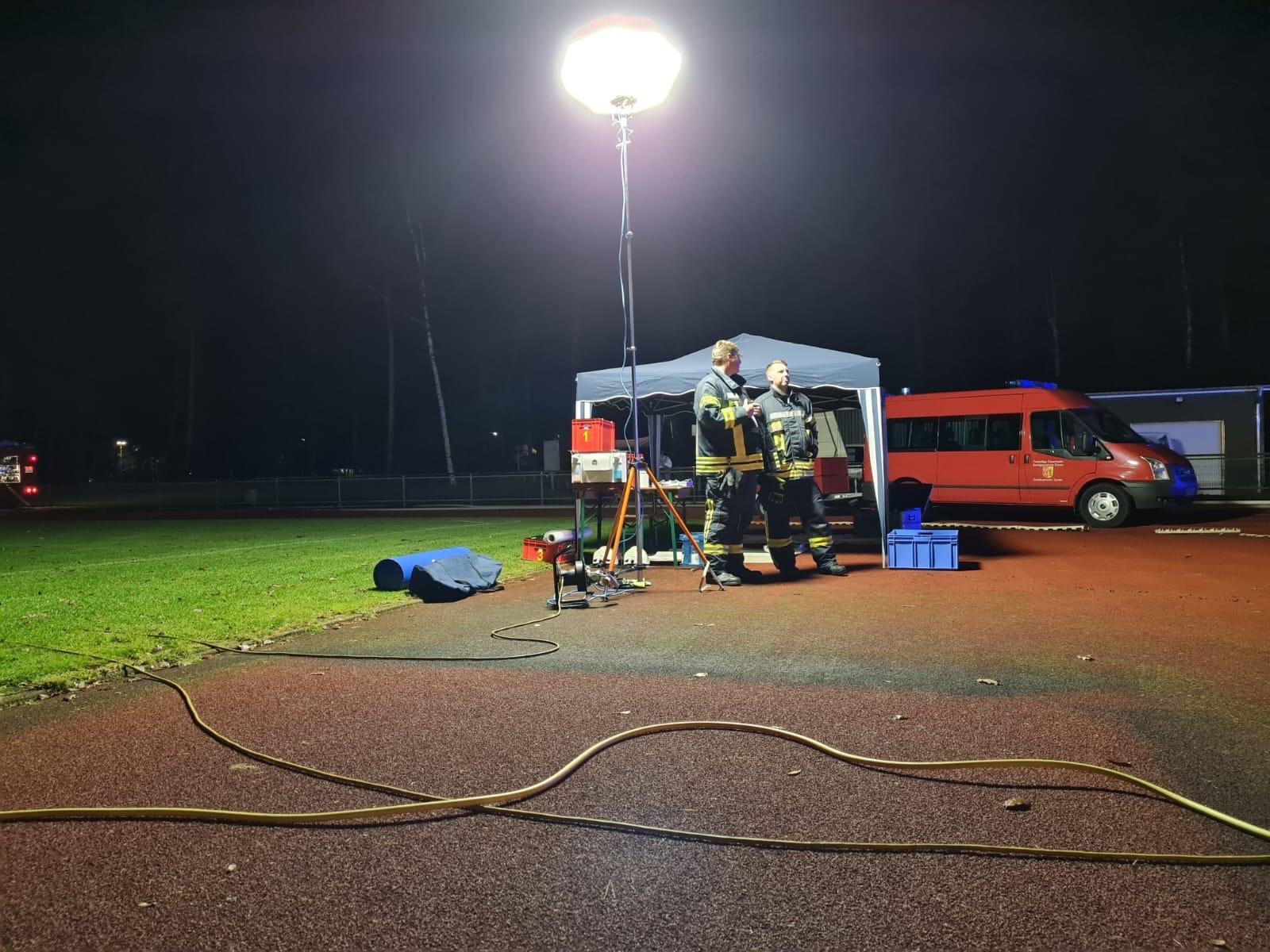 Aufgrund der Nähe des Sportlerheims zum Sportplatz, war es für die Einsatzkräfte zunächst nur schwierig möglich, den Löschangriff aufzubauen, da zunächst diverse Zäune überwunden werden mussten.