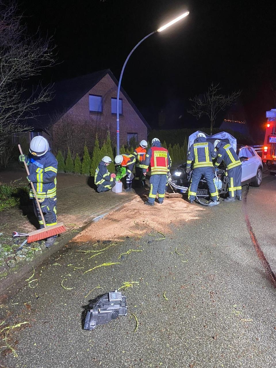 Dien Ortsfeuerwehr Zeven wurde gestern um 18:15 Uhr auf NAchforderung des Rettungsdienstes zu einer Hilfeleistung nach VU durch die Rettungsleitstelle alarmiert. In einem Wohngebiet ist ein PKW gegen einen Baum geprallt und Betriebsstoffe liefen aus.sonstige Informationen