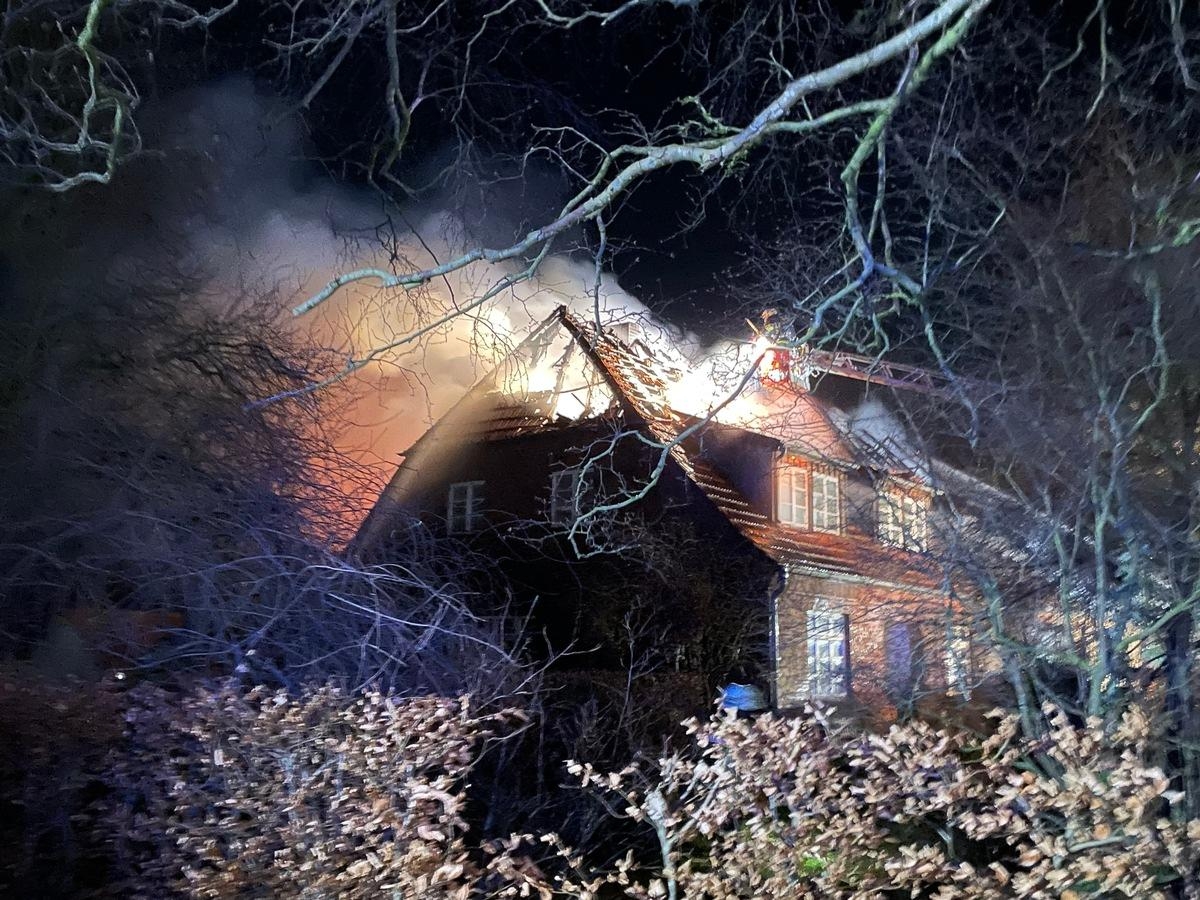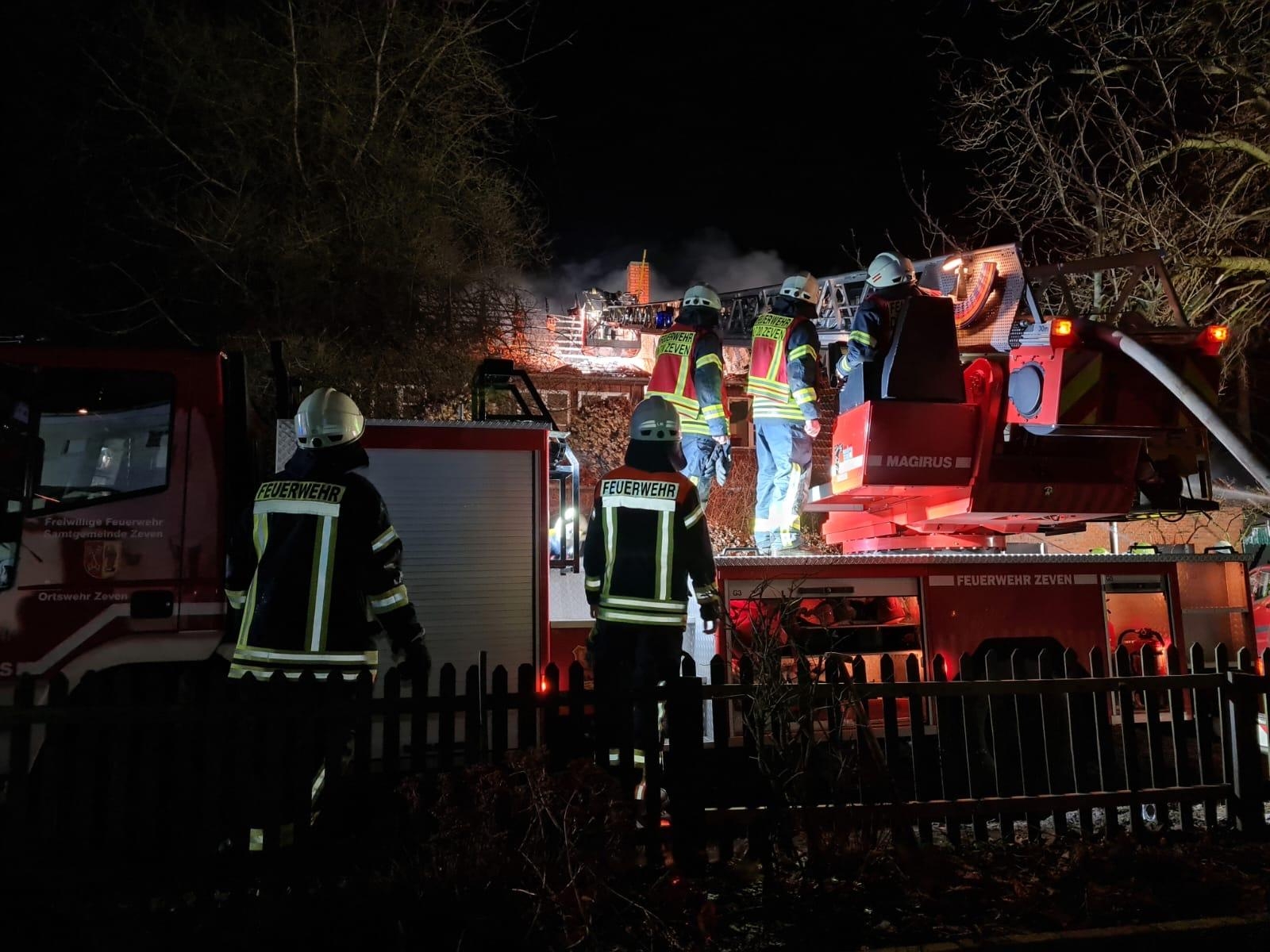 Gegen kurz nach 21 Uhr am Samstagabend geriet aus ungeklärter Ursache in Bülstedt in der Straße "Zum Bruch" ein Einfamilienhaus mit angrenzendem Stall in Brand. Das rund 25 mal 9 Meter große Gebäude stand bei Eintreffen der ersten Einsatzkräfte in Vollbrand. Der Brand war vom Stall aus auf das Wohngebäude übergegriffen.
