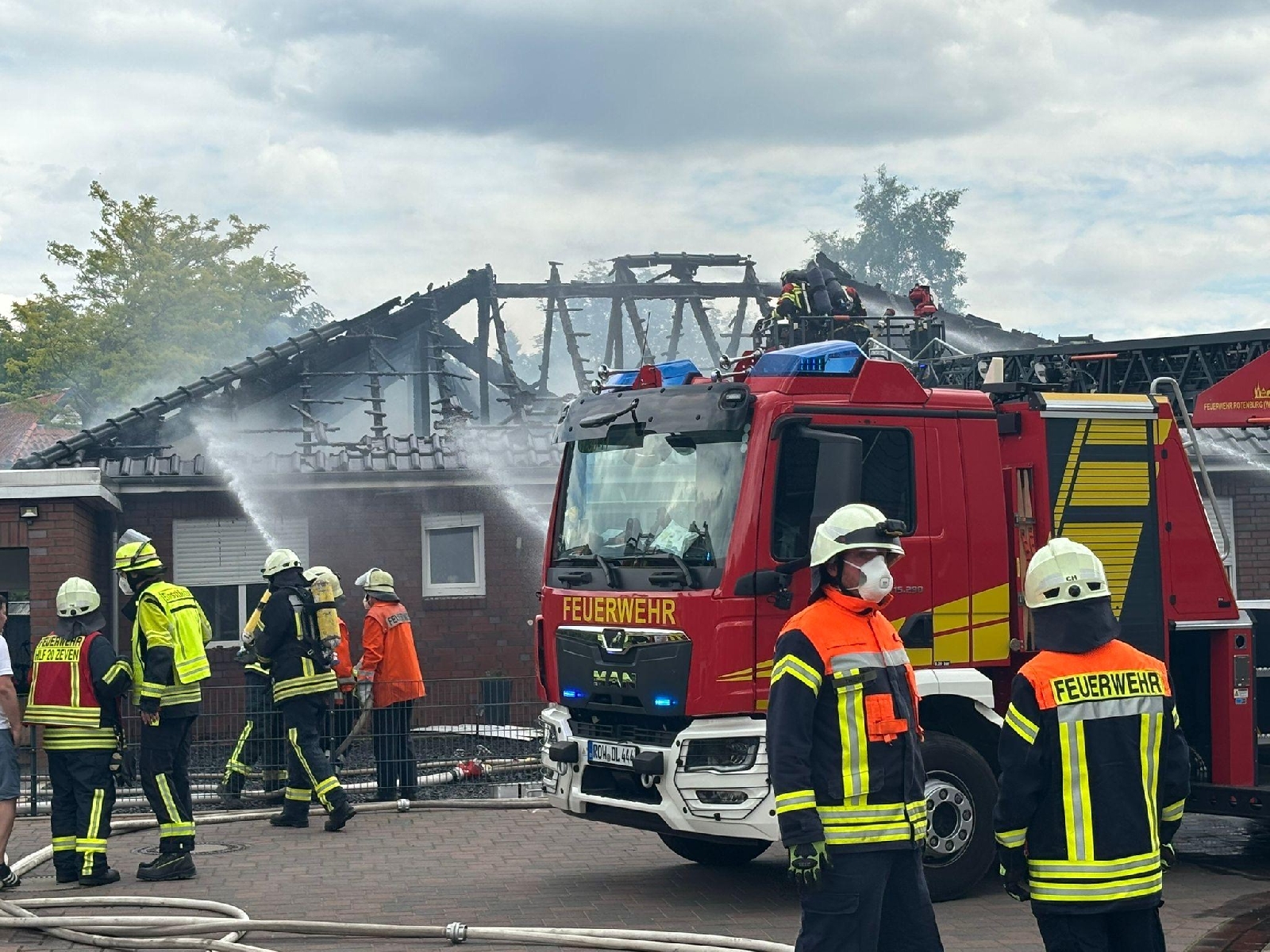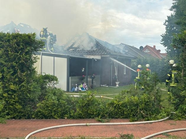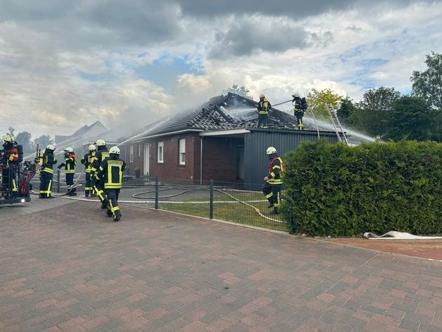 Einfamilienhaus gerät in Brand18.05.2024 Zeven (as). Gegen 14.10 Uhr am Samstagnachmittag geriet aus ungeklärter Ursache ein Einfamilienhaus in Zeven im Ibisweg in Brand. Bei Eintreffen der ersten Feuerwehren stand der Dachstuhl des Bungalows in Vollbrand. Umgehend musste das Alarmstichwort erhöht werden. Demnach wurden weitere Kräfte zur Einsatzstelle alarmiert.