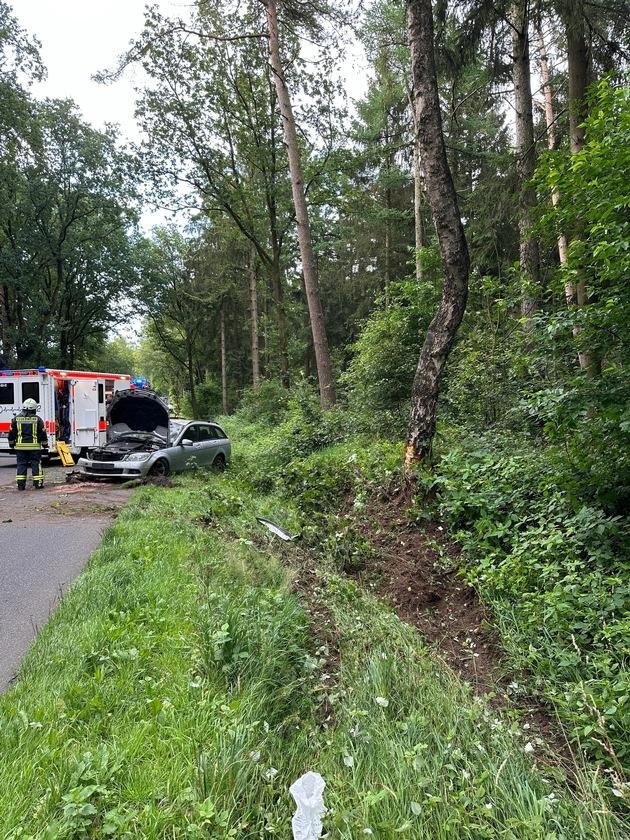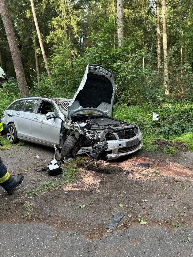 Kommend von der L142 in Richtung Frankenbostel fahrend war ein PKW aus bisher ungeklärter Ursache von der Fahrbahn abgekommen, ist gegen einen Baum geprallt und hat sich überschlagen. Gemeldet war eine eingeklemmte Person.