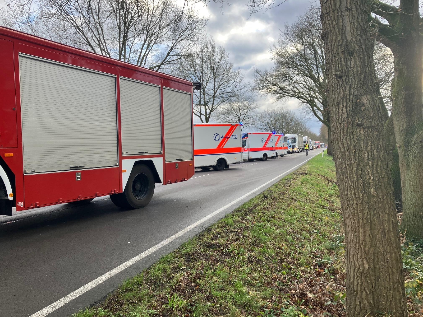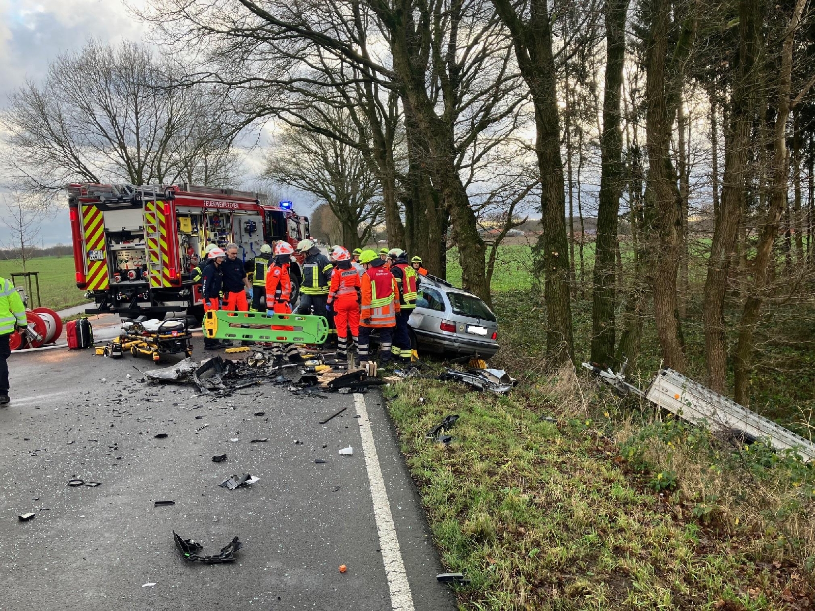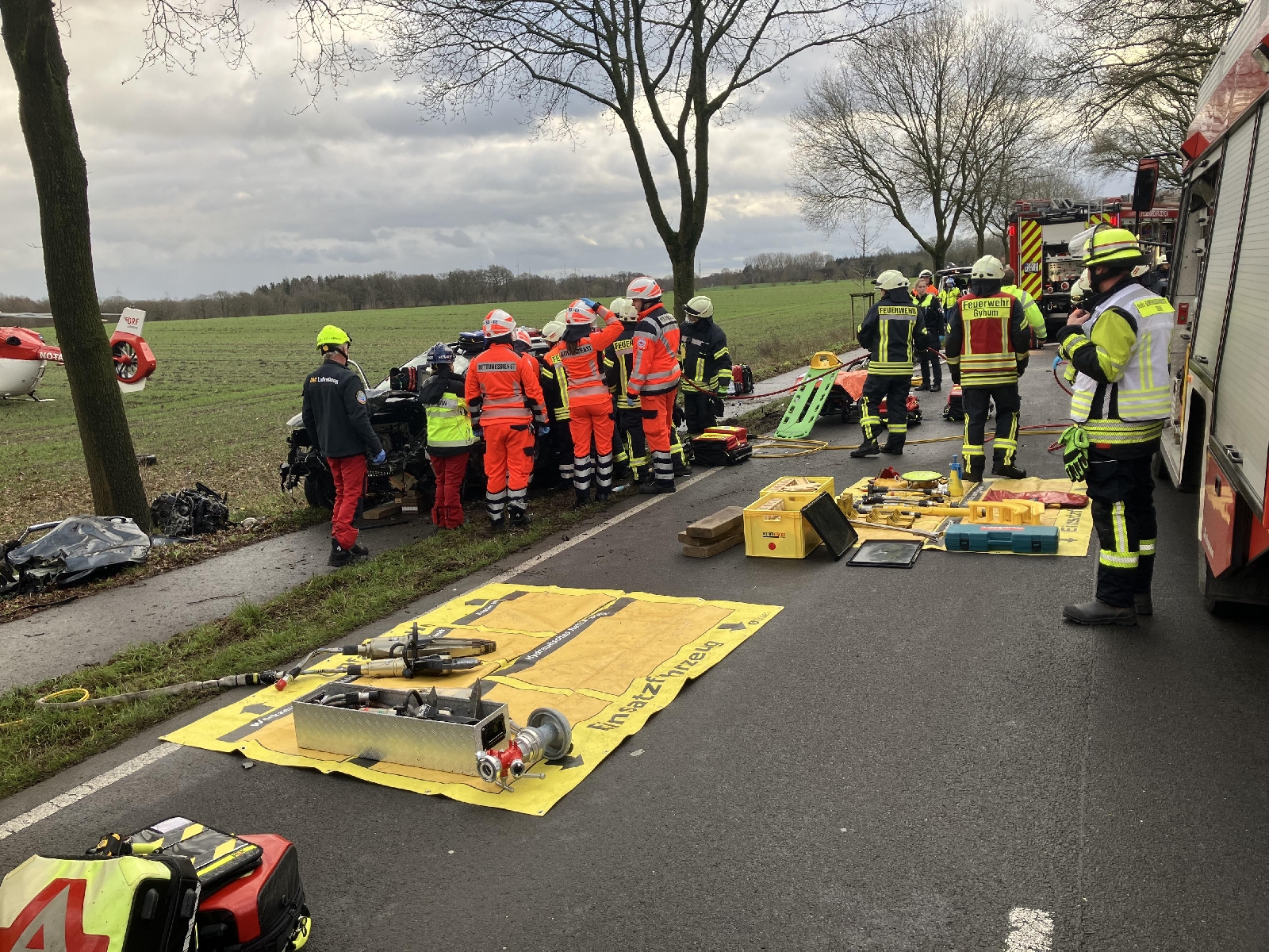 Der Organisatorische Leiter Rettungsdienst kam zufällig an der Unfallstelle vorbei und informierte die Leitstelle für Feuerwehr und Rettungsdienst. Diese alarmierte daraufhin die Feuerwehren aus Zeven, Gyhum und Sottrum sowie vier Rettungswagen, zwei Notarzteinsatzfahrzeuge, zwei Rettungshubschrauber aus Bremen und die Polizei.