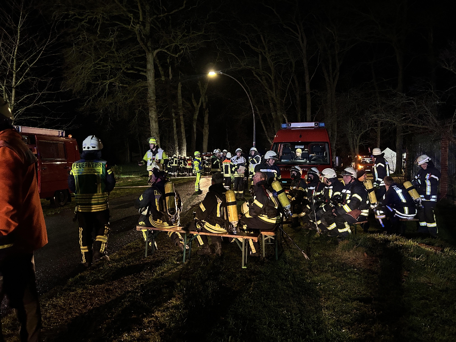 Da sich das Grundstück am Ortsrand befand und die Wasserversorgung zunächst schwierig sicherzustellen war, wurden zusätzliche Tanklöschfahrzeuge aus umliegenden Orten alarmiert. Diese überbrückten die Zeit, bis eine ausreichende Wasserversorgung an der Einsatzstelle aufgebaut werden konnte.
