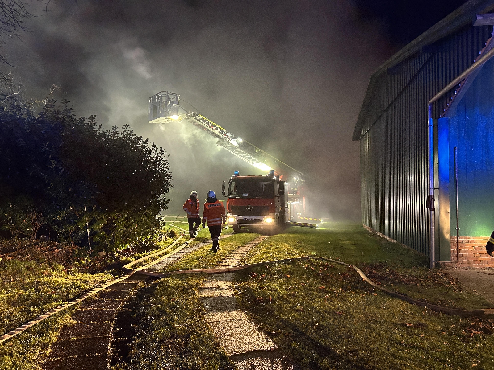 In der Nacht des 02.01.2025 geriet eine Lagerhalle in Volkensen in Brand. Das Feuer wurde bereits als Großbrand gemeldet, was sich beim Eintreffen der ersten Einsatzkräfte bestätigte. Aufgrund der schnellen Brandausbreitung innerhalb der Halle und der Gefahr für die benachbarten Gebäude, wurde das Einsatzstichwort unmittelbar auf „Feuer 4“ erhöht.