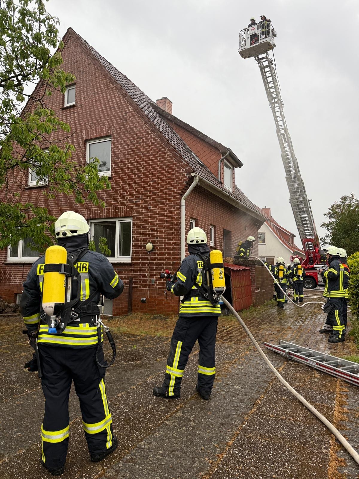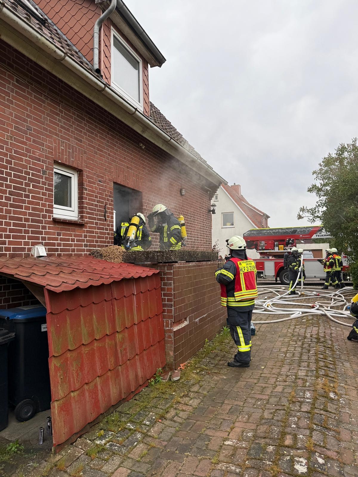 Am Dienstagabend wurde zunächst die Feuerwehr Zeven zu einem Brand eines Einfamilienhauses alarmiert. Es wurde ein realer Notruf abgesetzt und dementsprechend alarmiert. Da sich laut Notruf noch Personen im Gebäude befanden, wurde das Alarmstichwort erhöht und weitere Einsatzkräfte alarmiert. Unter Atemschutz gingen die Feuerwehrleute in das verqualmte Gebäude vor und spätestens als die erste Puppe gerettet wurde war klar, dass es sich um eine Einsatzübung handelte. Natürlich wurde der Einsatz weiterhin professionell abgearbeitet und insgesamt 6 Personen und eine Hundepuppe gerettet.