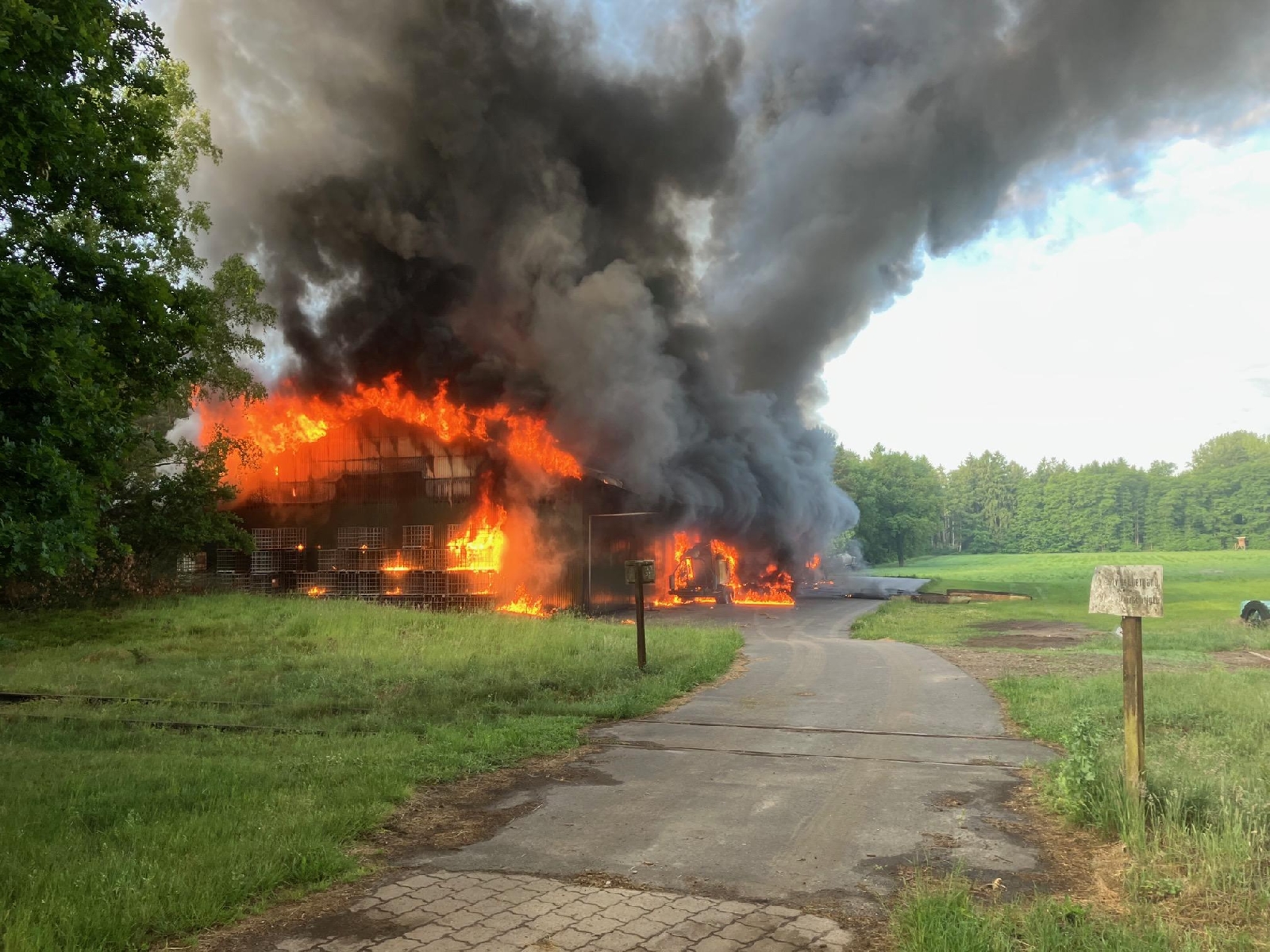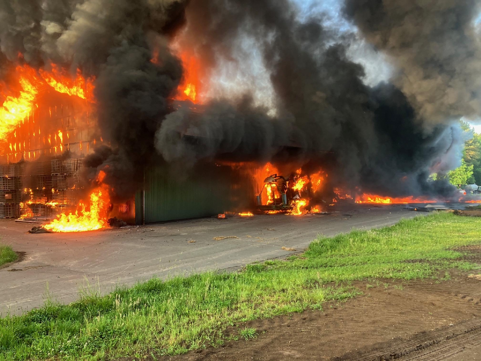In dem Gebäude befanden sich große Mengen Holzhackschnitzel, Strohballen sowie landwirtschaftliche Maschinen. Durch die enorme Brandlast entwickelte sich das Feuer rasant. Eine weithin sichtbare Rauchwolke stieg über dem Brandort auf.