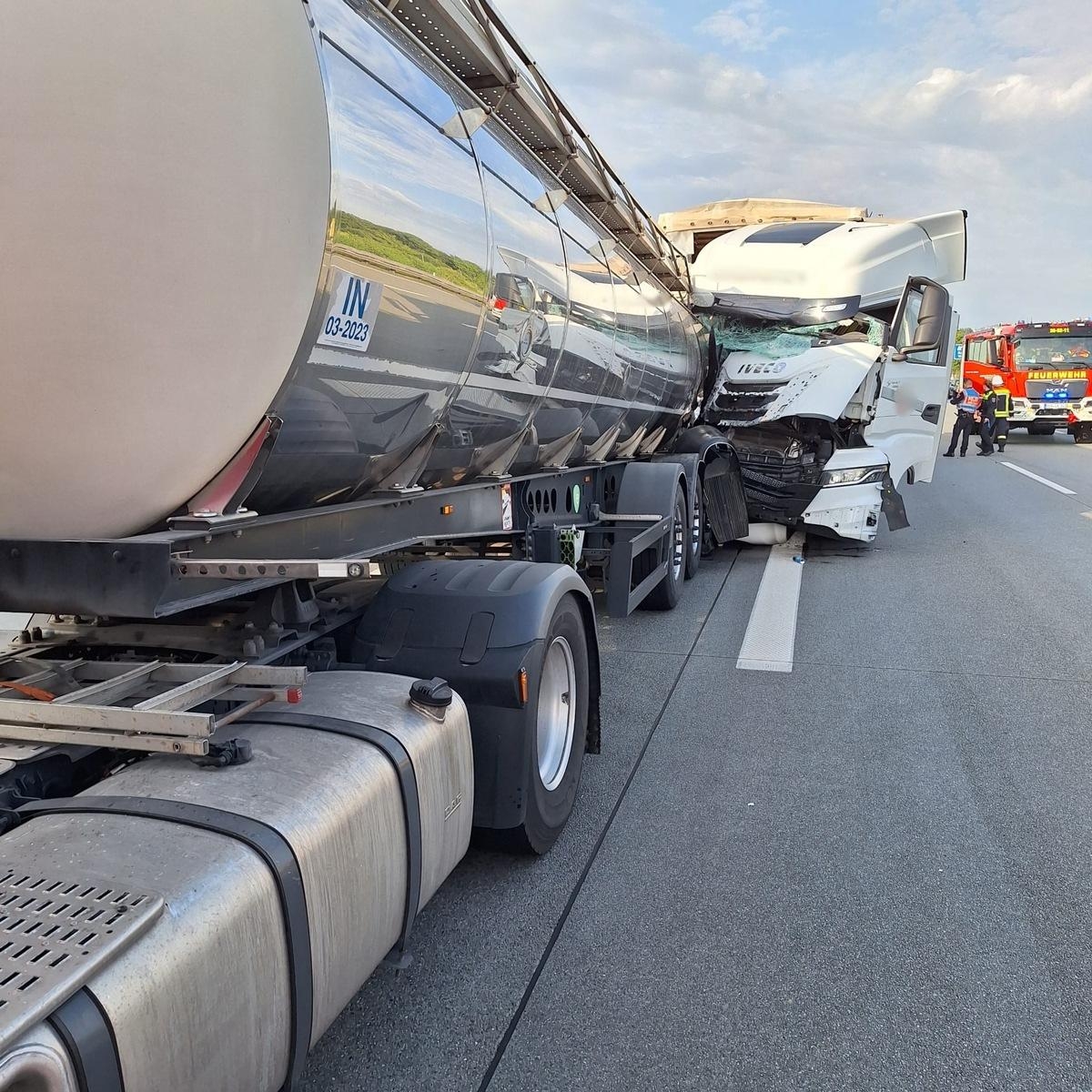 Am Donnerstagmorgen, den 26.06.2025 kam es gegen 08:15 Uhr auf der Bundesautobahn 1 zwischen den Anschlussstellen Bockel und Elsdorf zu einem schweren Verkehrsunfall mit zwei beteiligten Lastkraftwagen.