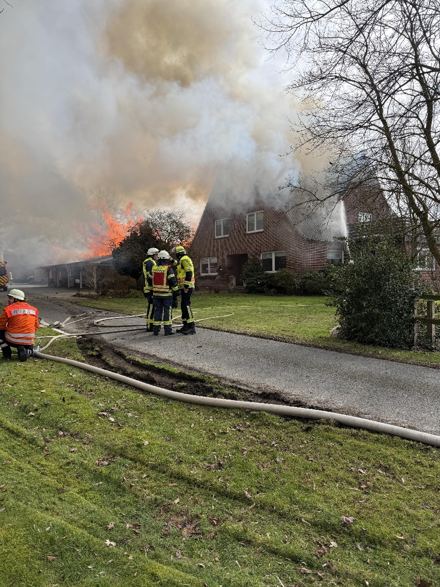 Besondere Herausforderungen ergaben sich durch ein im Gebäude integriertes Schwimmbad sowie die aufwendige Dachkonstruktion. Zur Brandbekämpfung aus der Höhe wurden zudem zwei Drehleitern aus Zeven und Harsefeld eingesetzt. Ein nachalarmierter Bagger sorgte dafür, dass in dem angrenzenden Gebäudekomplex alle Glutnester gelöscht werden konnten.